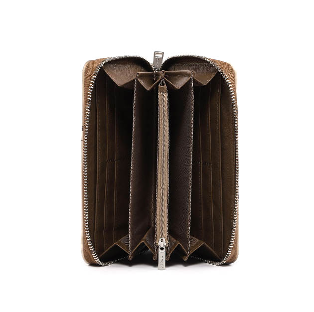 Portafogli Donna tortora con stampa in ecopelle. DESCRIZIONE: 7 COMPARTI MULTIUSO 1 ZIP PORTA MONETE 8 PORTA CARTE