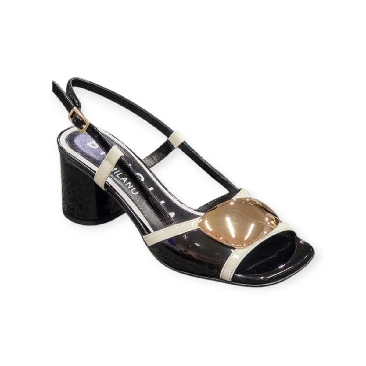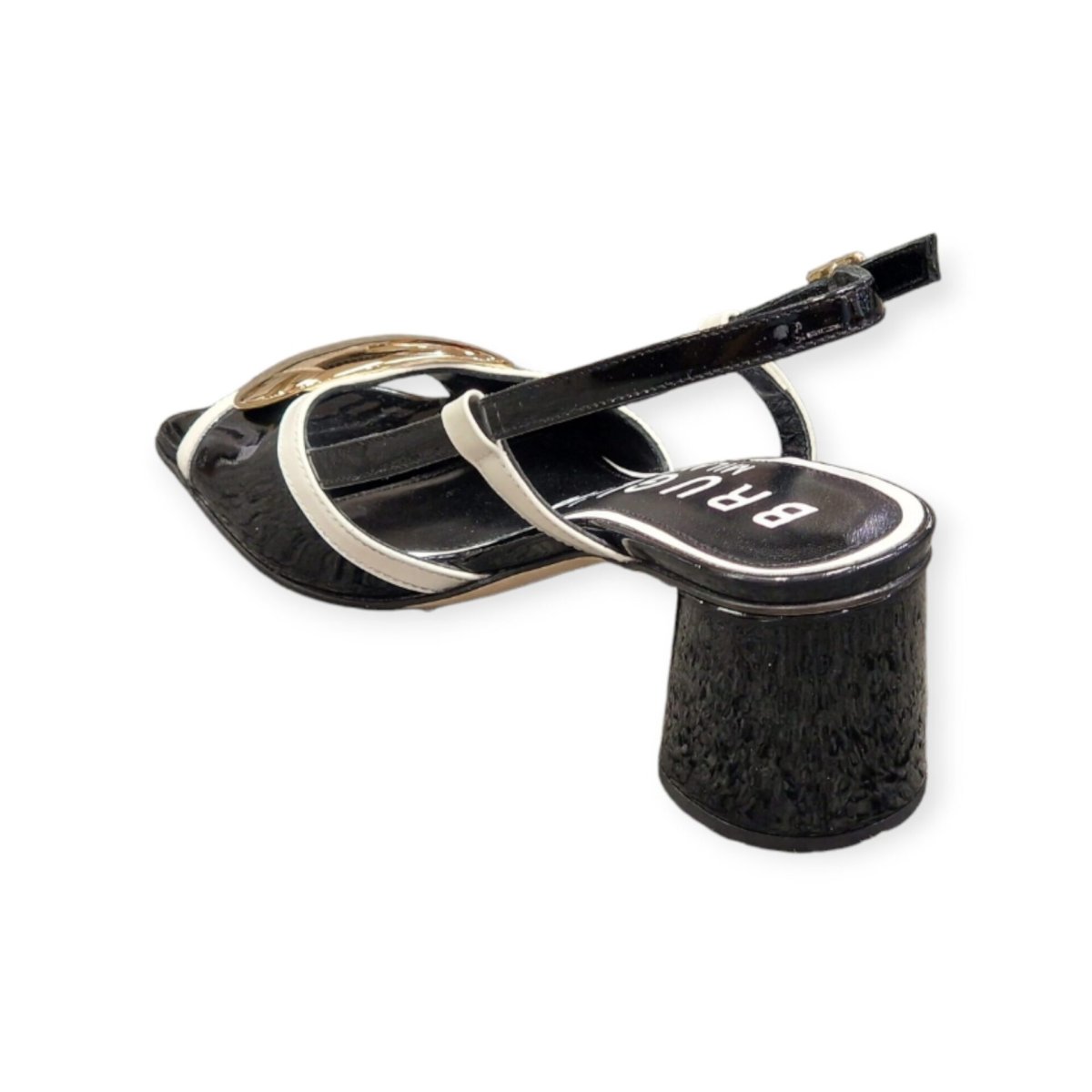 SANDALI “Bruglia” IN VERNICE BIANCO/NERO 50 mm