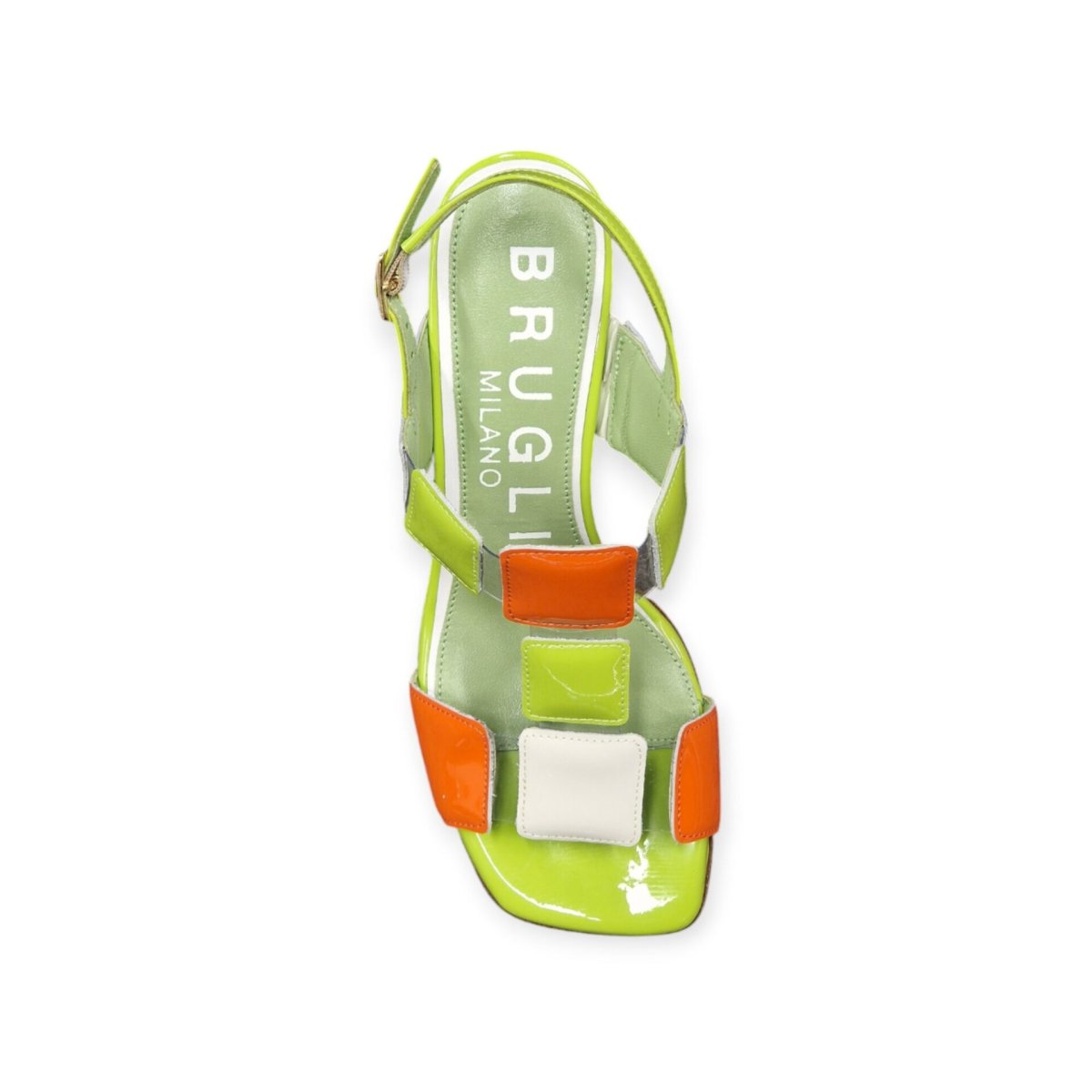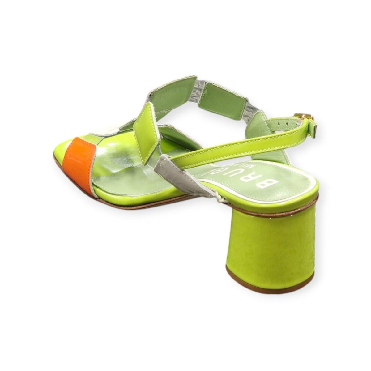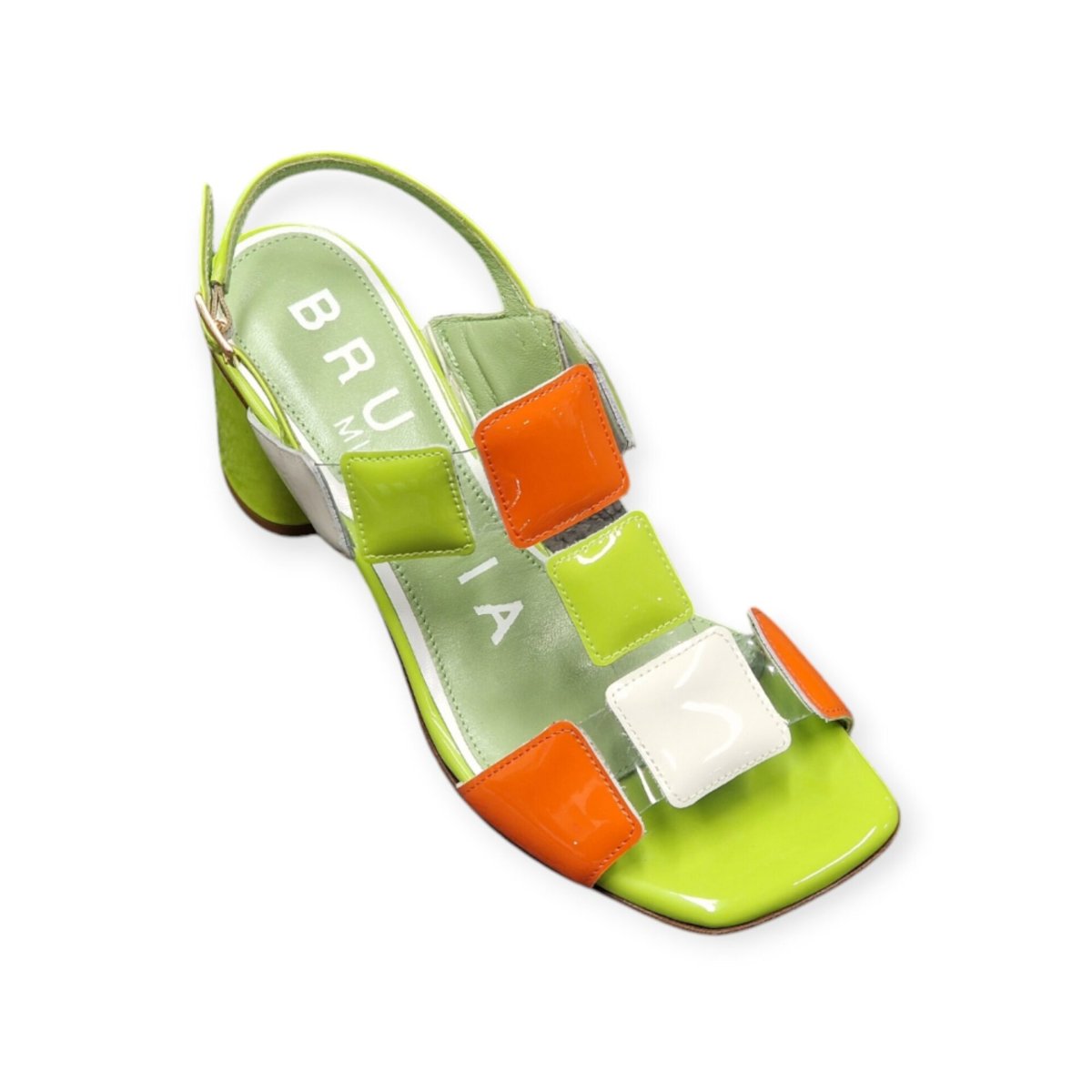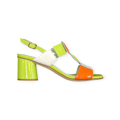 SANDALI “Bruglia” IN VERNICE E VINILE VERDE/ARANCIO 50 mm