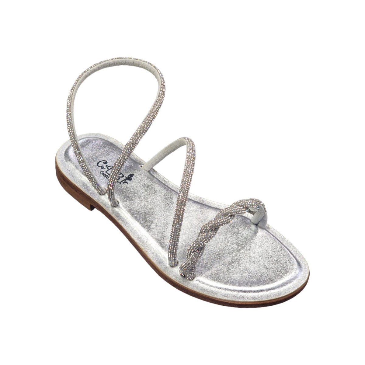 SANDALI “Capri – Rodi” IN PELLE E PAVE’ DI CRISTALLO ARGENTO 10 mm