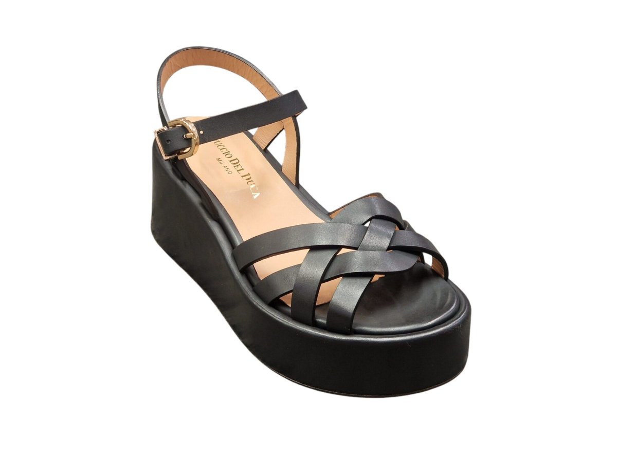 Sandalo in vitello nero. Zeppa 60 mm.