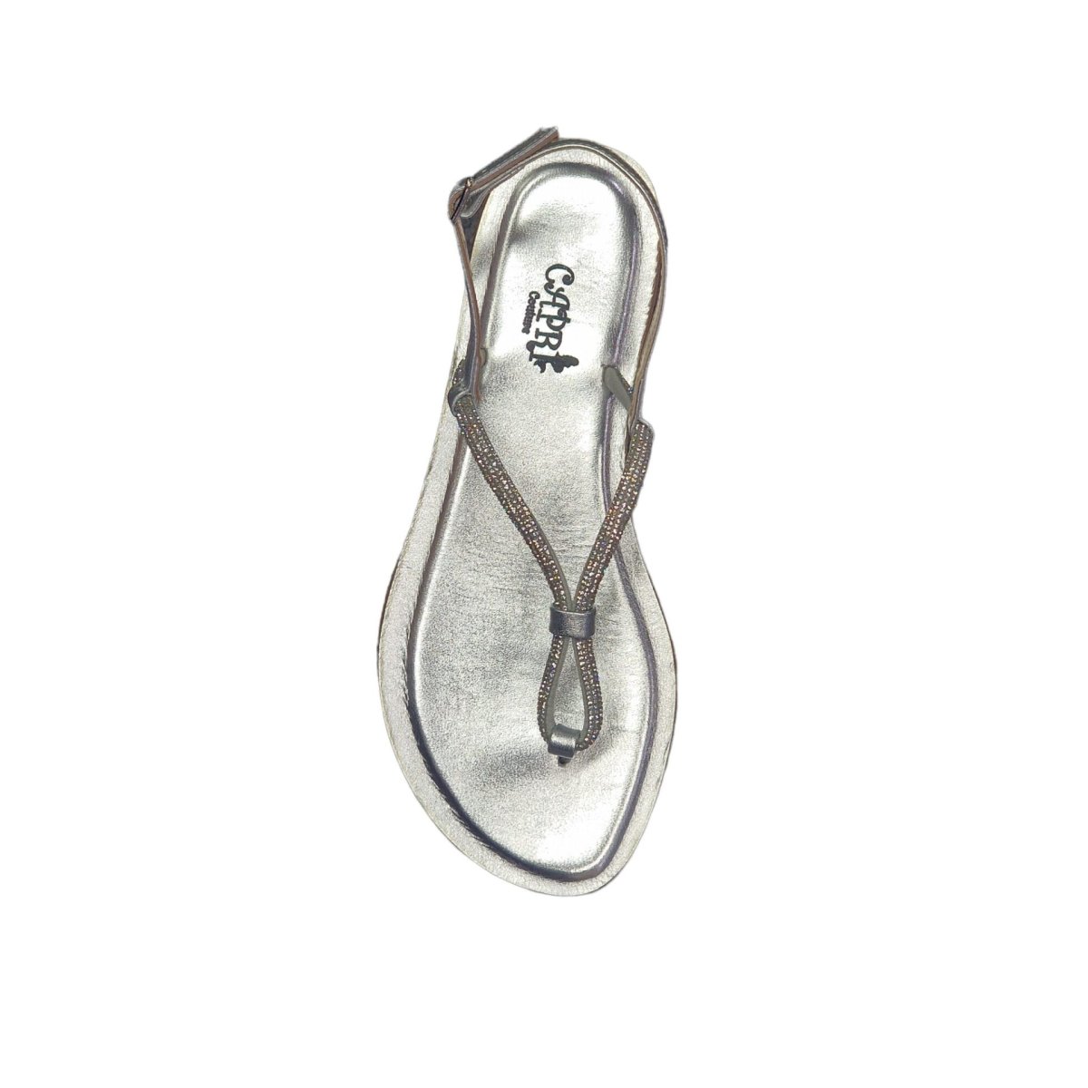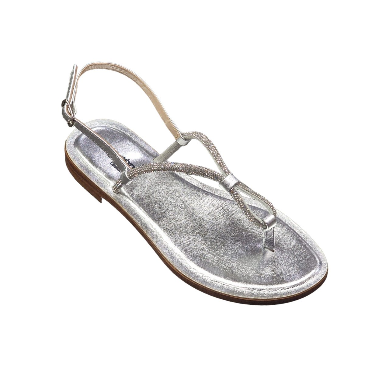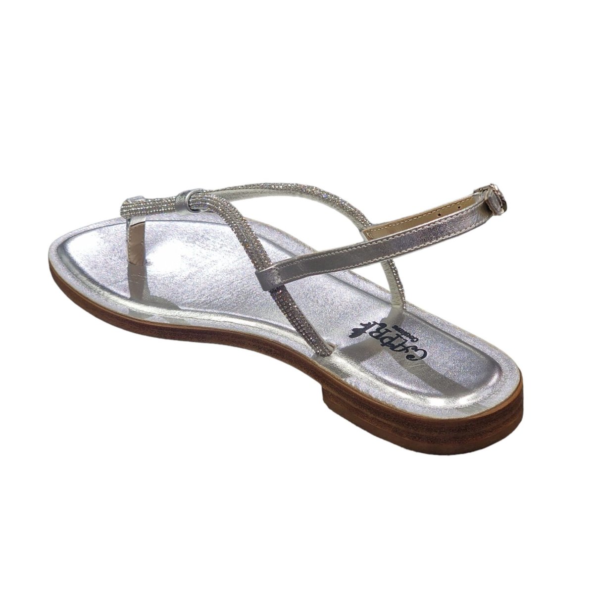 SANDALI INFRADITO “Capri – Azorre” IN PELLE E PAVE’ DI CRISTALLO ARGENTO 10 mm