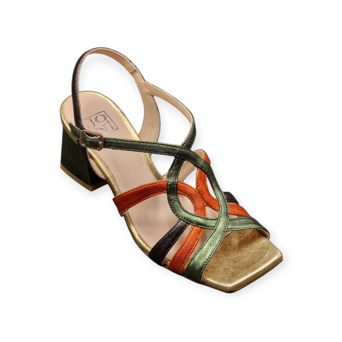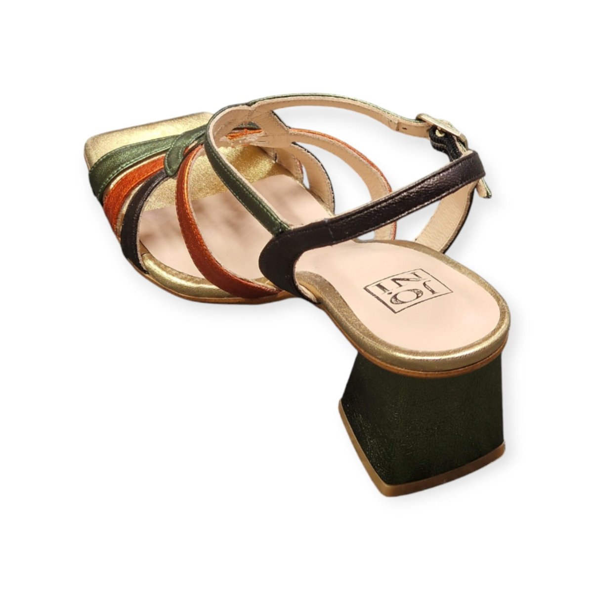 Un design che parla da solo. Il sandalo รจ pensato per distinguersi in ogni occasione speciale. I suoi cinturini intrecciati creano un design molto originale sul collo del piede, conferendo immediatamente al look un tocco sofisticato e femminile. Le nuance verde e bronzo aggiungono quel tocco di luce perfetto sia per gli eventi diurni che serali. La forma del tallone conferisce eleganza senza rinunciare al comfort, mentre la chiusura con fibbia regolabile mantiene il piede ben saldo. Se stai cercando un sandalo con tacco comodo per matrimoni, feste o una cena molto speciale… questo รจ il modello che stavi aspettando.…
