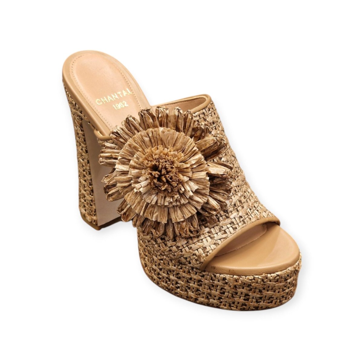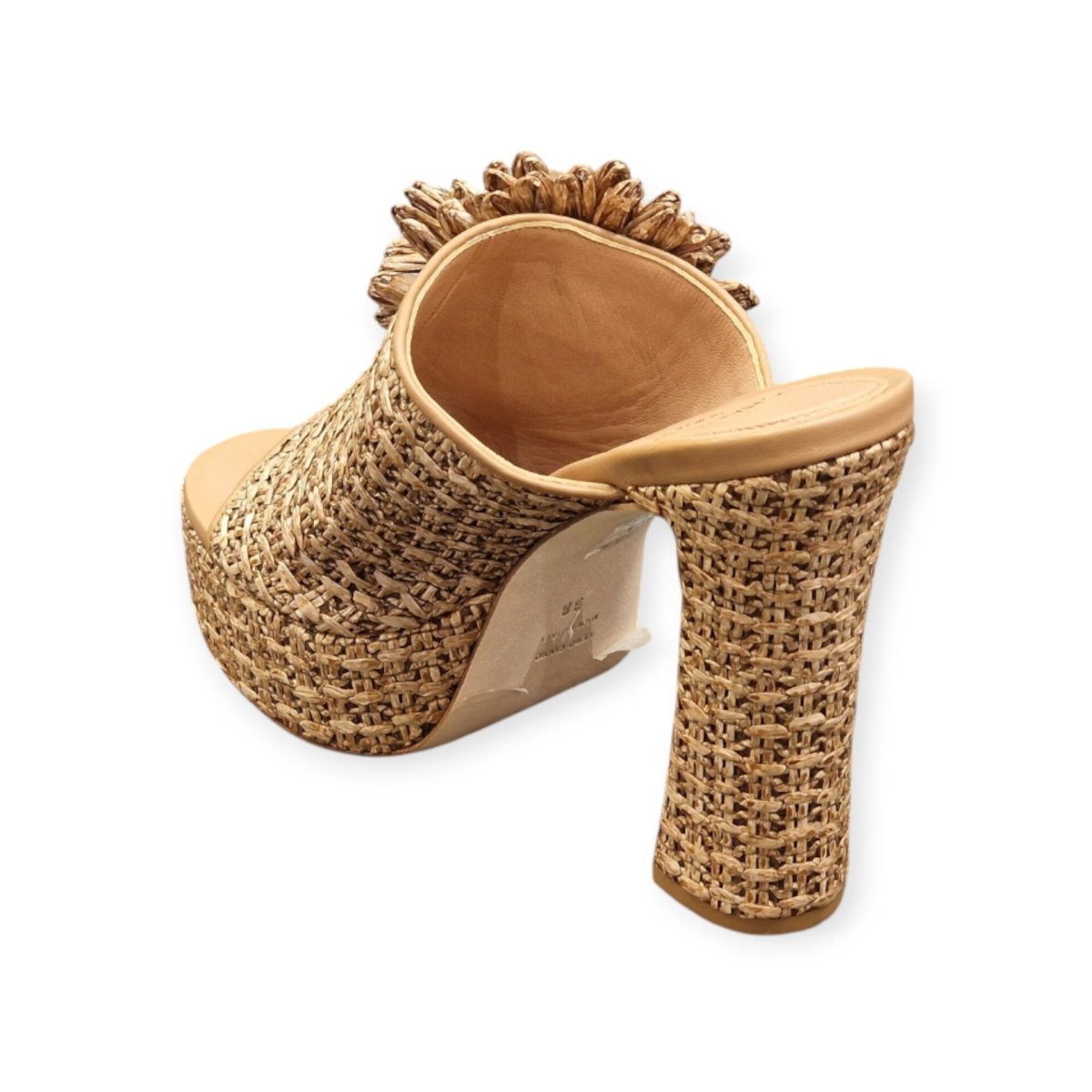 SANDALI MULES “Chantal” IN RAFFIA BEIGE 130 mm