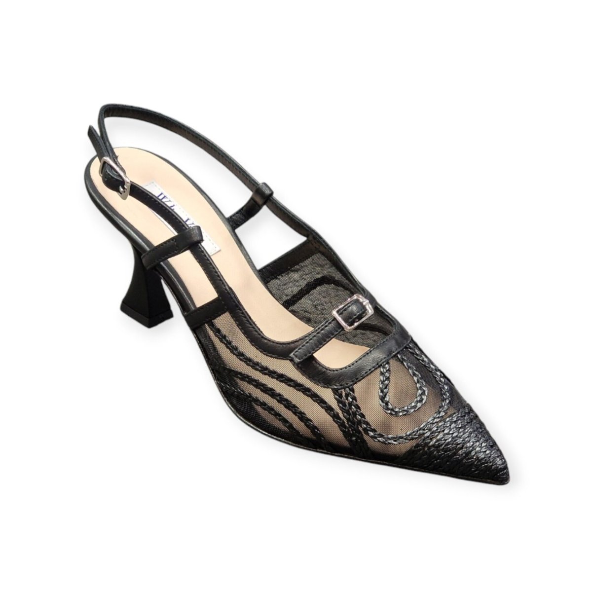 SANDALI “Slingback – Walter Violet” IN MICRO RETE NERO 70 mm