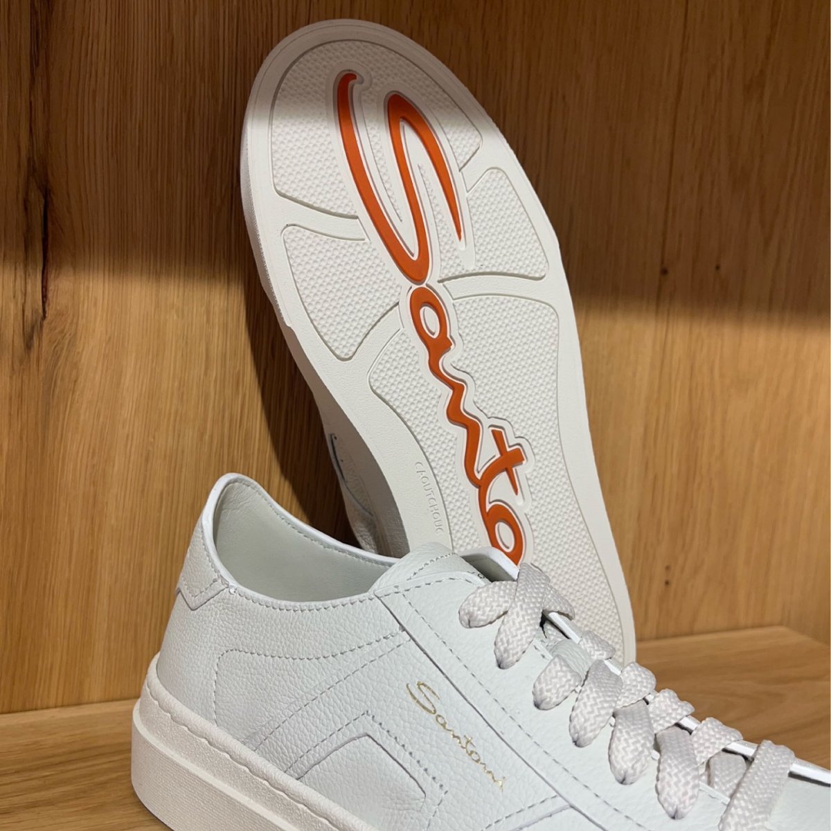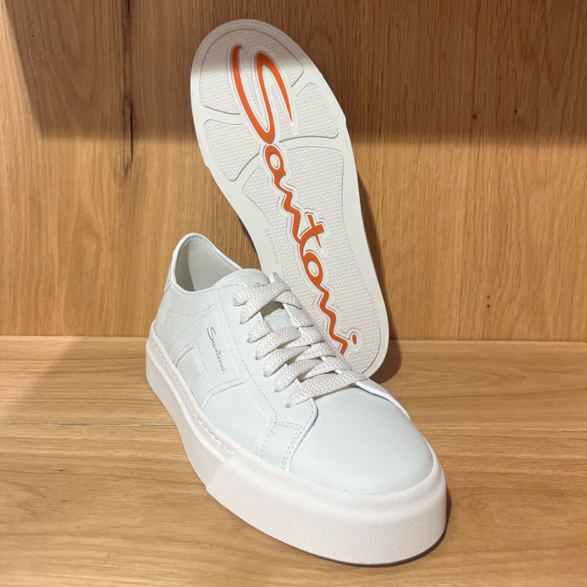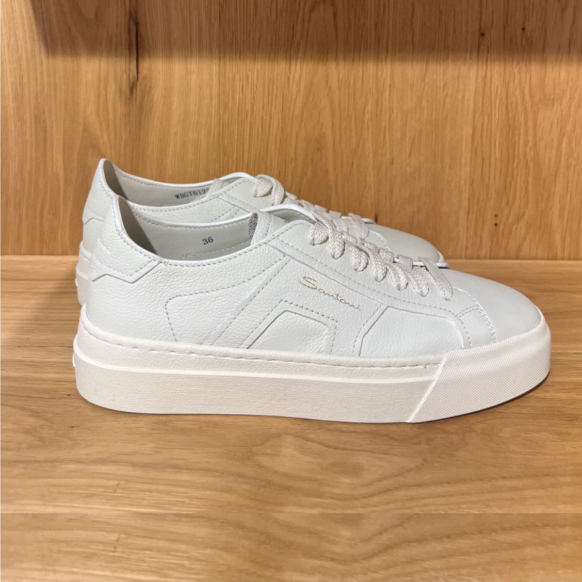 Santoni Double Buckle sneakers in pelle bottolata bianca