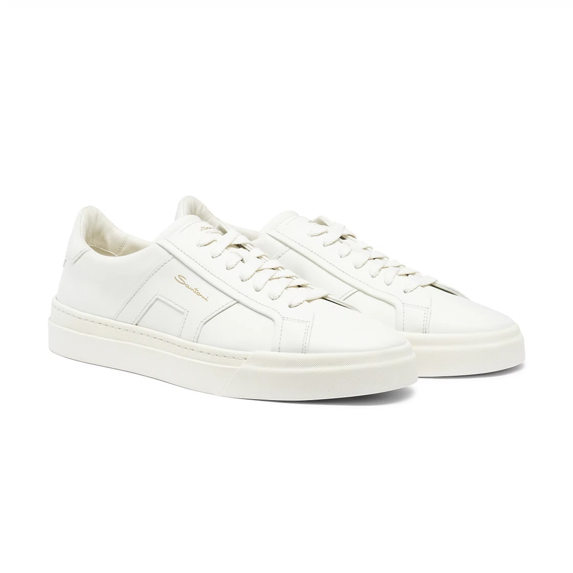 Santoni Sneaker Double Buckle da Uomo pelle bianca