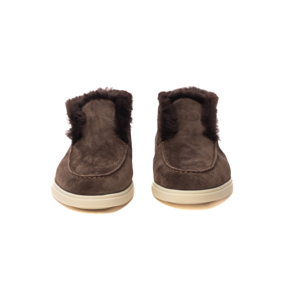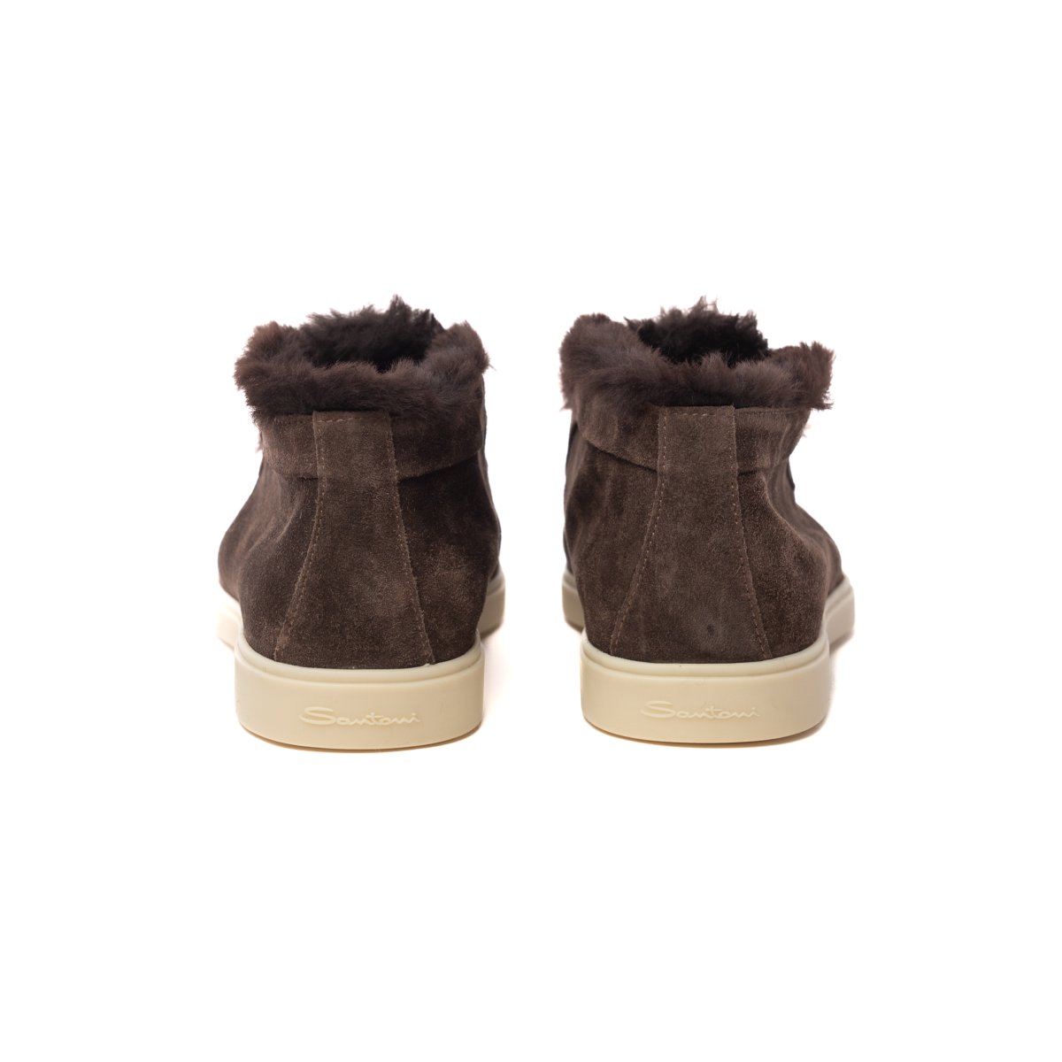 Santoni Stivaletto desert con pelliccia da donna in suede cioccolato
