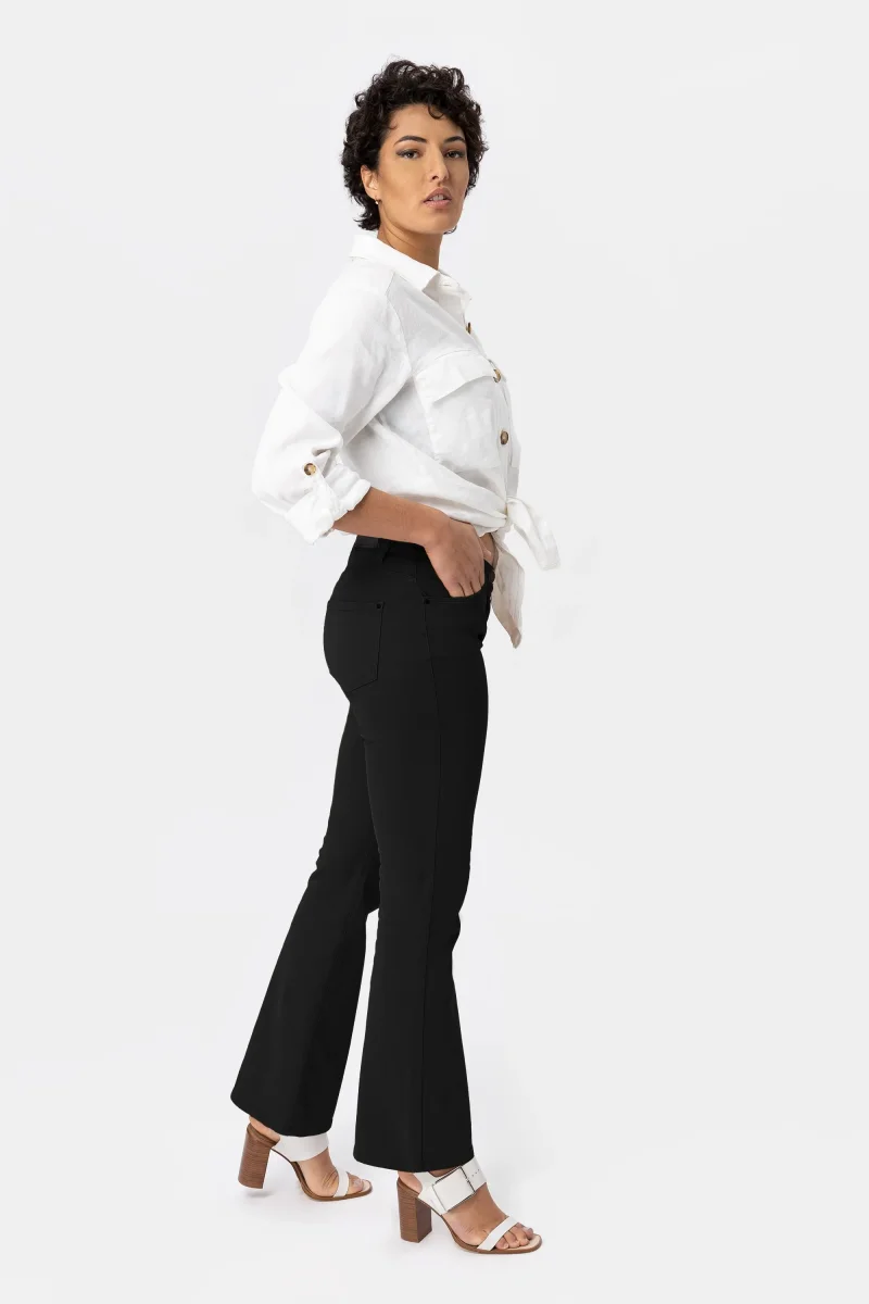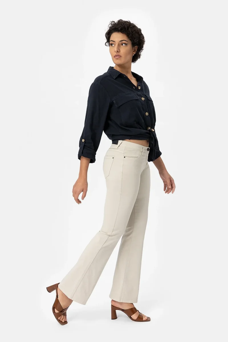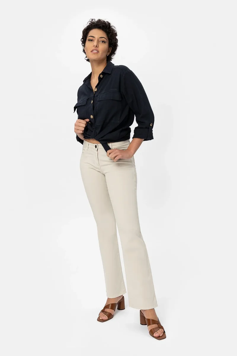 Pantalone Donna FlareCotone super stretch Peso tessuto: autunno/inverno Pantalone in cotone super stretch a zampa. Fit aderente ampio al fondo e vita regolare con chiusura zip e bottone, attuale e moderno. Un pantalone perfetto da abbinare ad una sneaker e a una camicia, per le giornate di tempo libero. Un pantalone versatile e un must […]