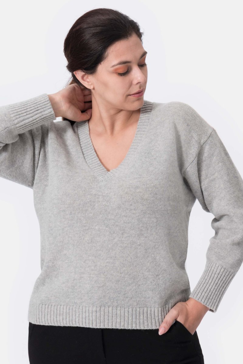 Shelly Maglia Scollo a V in Lana Grigio