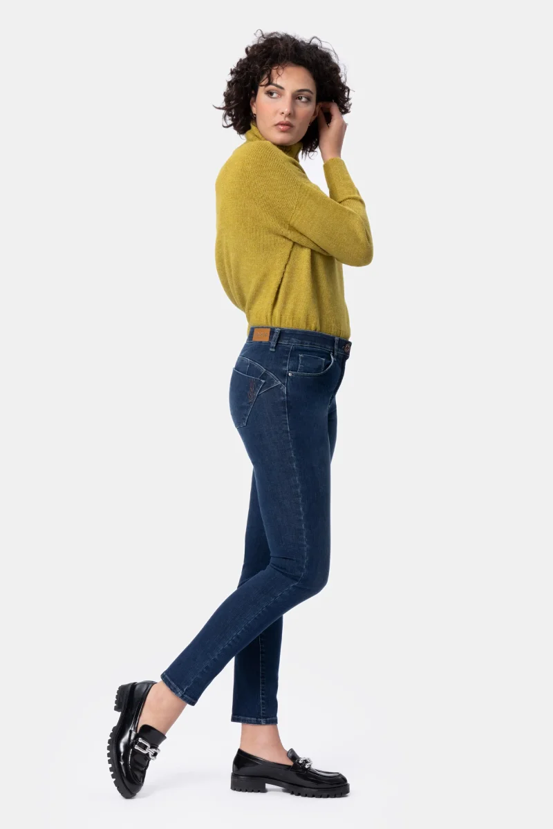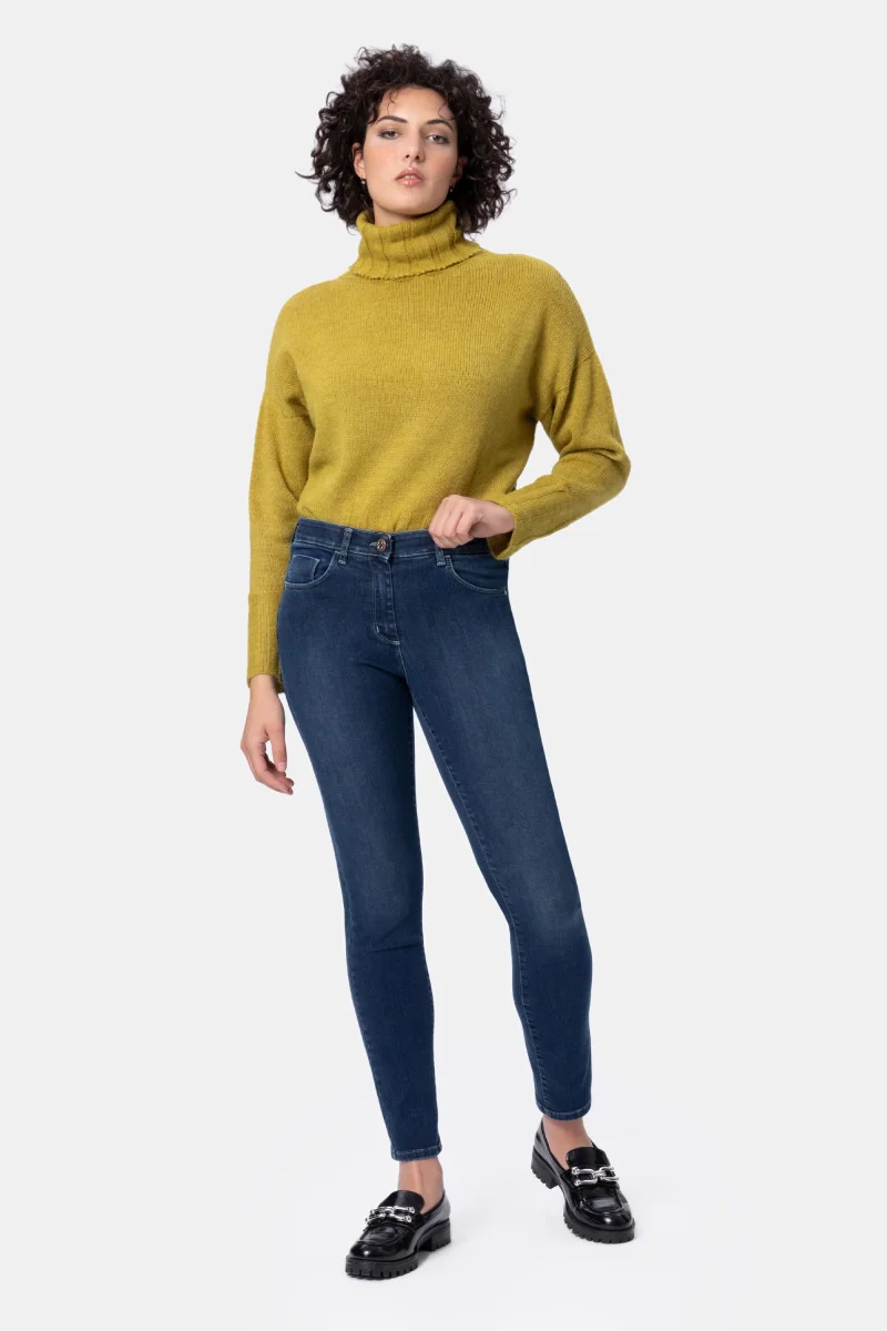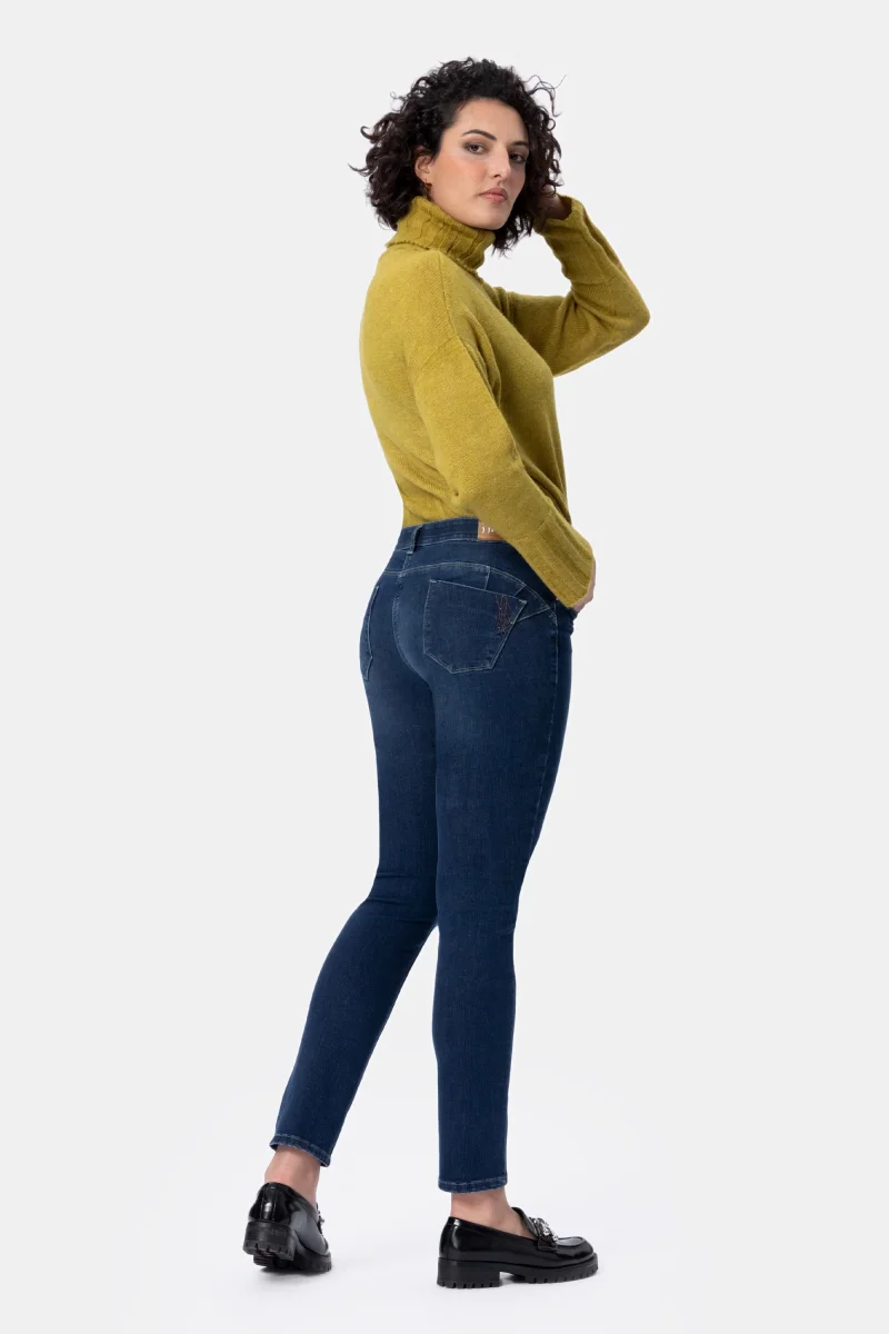 Jeans Donna Slim Push-up dettaglio strassDenim Blu super stretch Peso tessuto: 4 stagioni Jeans push-up in denim super stretch con vestibilitร slim e vita regolare. L’elastico in interno cintura regala un comfort assoluto. Chiusura con bottone gioiello e zip. Dettaglio strass sulla tasca dietro per un tocco glamour. Dallโattitudine leisure questo pantalone si adatta a […]