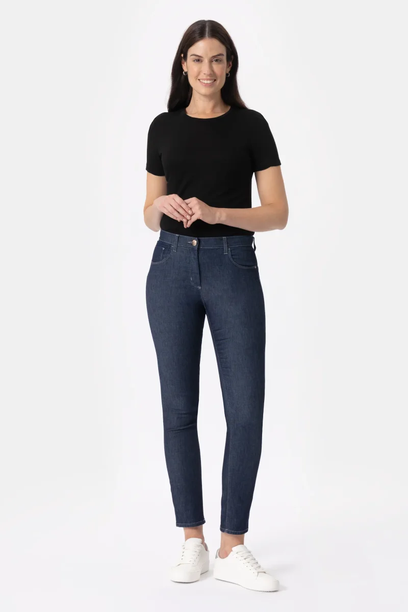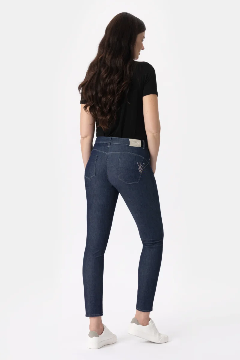 Jeans denim blue super stretch con vestibilitร slim push up. Questo modello รจ costruito con vita media elasticizzata, chiusura con zip e bottone, pratiche tasche. Un jeans attuale, comodo e per ogni occasioni da quelle piรน quotidiane a quelle piรน eleganti.
