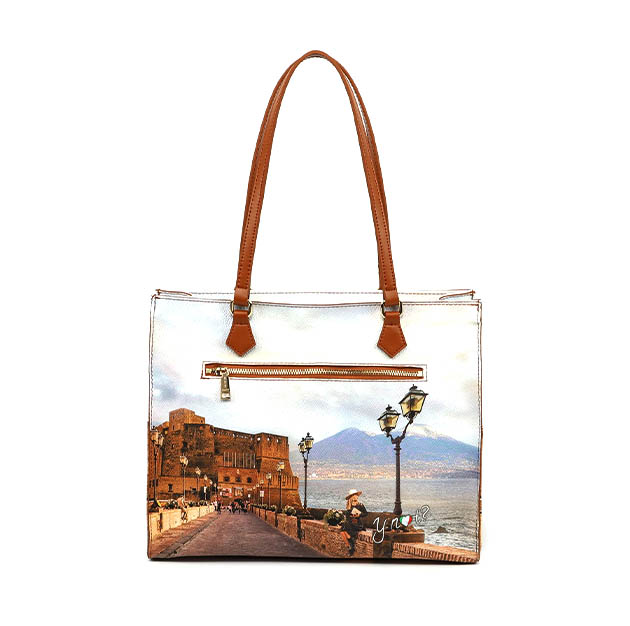Borsa shopping Donna multicolor in goffrato. L’interno รจ foderato in tessuto antistrappo e presenta una tasca con cerniera porta oggetti . Tasca posteriore.ย Logo Ynot stampato sulla borsa. Portachiavi loggato Ynot removibile.