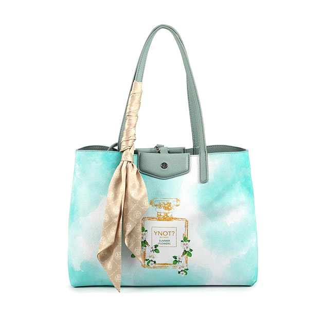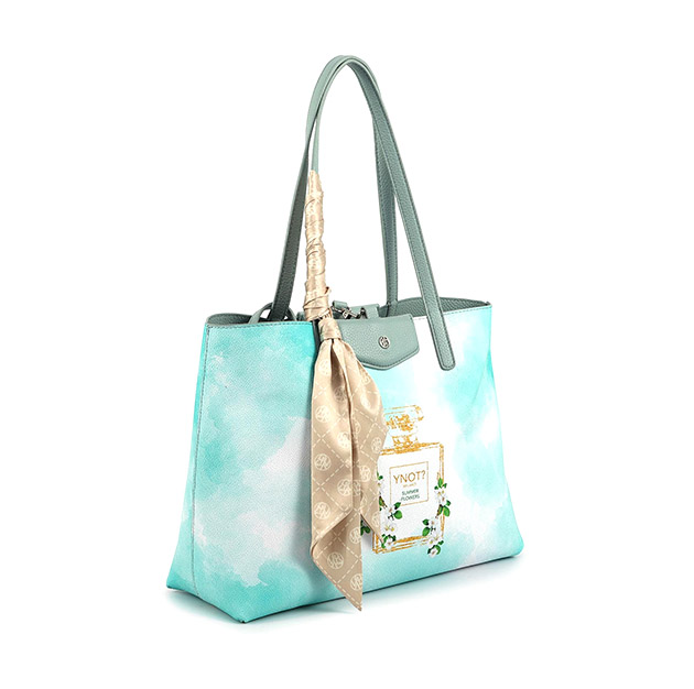 Shopping Donna Multicolor/azzurra in pelle ed ecopelle. Stampa fantasia. 1 COMPARTO ACCESSORI INTERNI 1 BORSA INTERNA AMOVIBILE DOPPIO MANICO A SPALLA 1 FOULARD AMOVIBILE CHIUSURA CON GANCIO