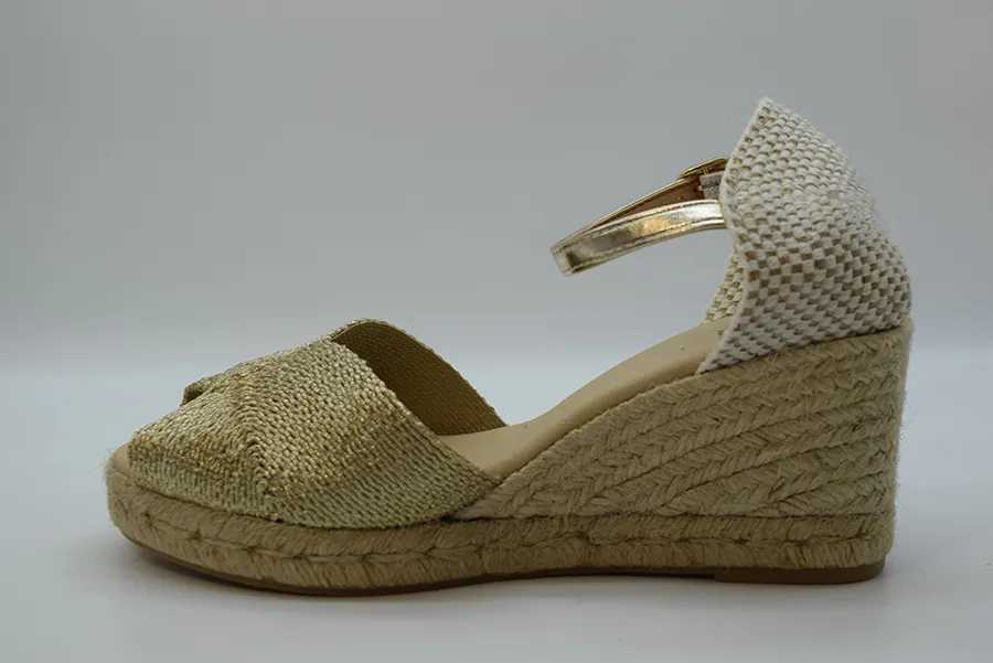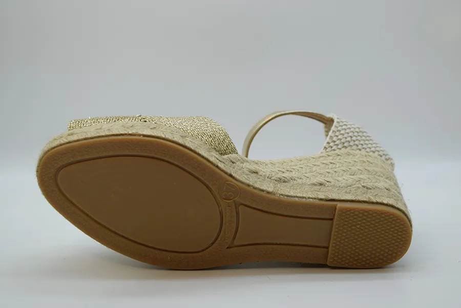 Modello: Cordela Colore: Platino Materiali: Raffia Suola: Gomma Chiusura: Cinturino con fibbia Altezza Platform: 2 cm Altezza Zeppa: 5 cm