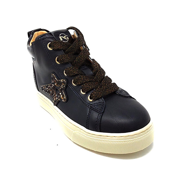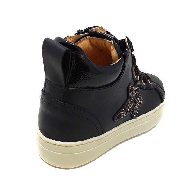 Sneaker Bambina nera in pelle, con inserto a stella in paillettes. Stile sporty-glam per questa scarpa adatta ad ogni outfit. Made in Italy.