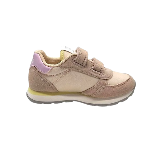 Sneaker Bambina porcellana in tessuto e pelle scamosciata, con insertiย a contrasto. Stile urban e sportivo per questa scarpa adatta a tutti gli outfit.