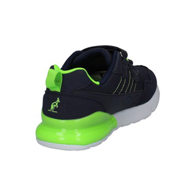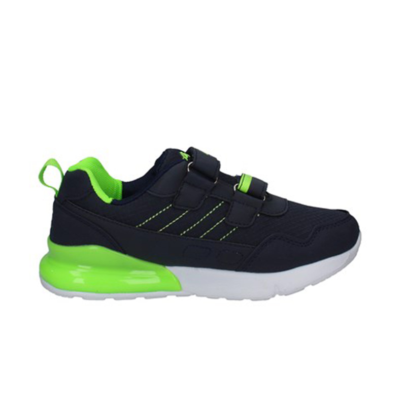 Sneaker Bimbo blu in tessuto ed ecopelle, con inserti giallo fluo a contrasto. Stile urban per questa scarpa adatta a tutte le occasioni.
