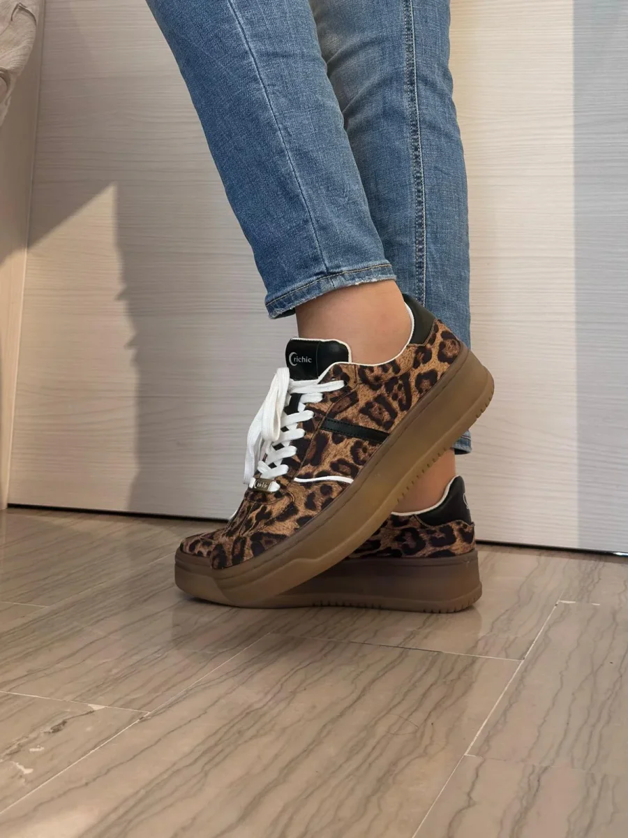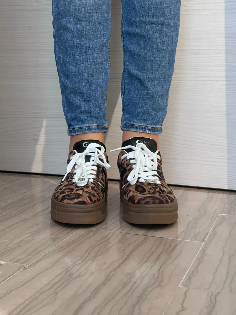 Per chi ama osare senza rinunciare alla comoditร ! Questa sneaker Crichic completamente leopardata dona carattere anche ai look piรน semplici.
