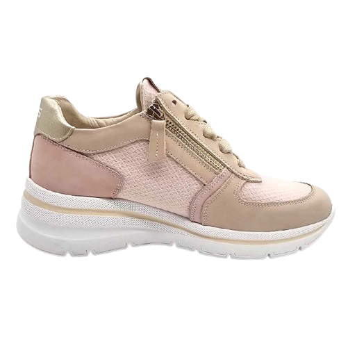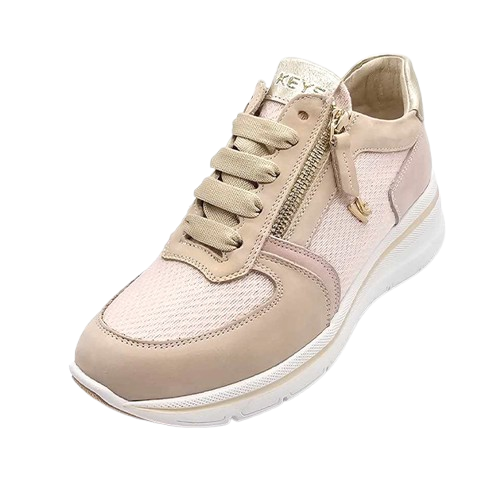 Sneaker Donna KEYS in pelle con inserti in tessuto mesh e camoscio- K-10600 NUDE/PINK/GOLD