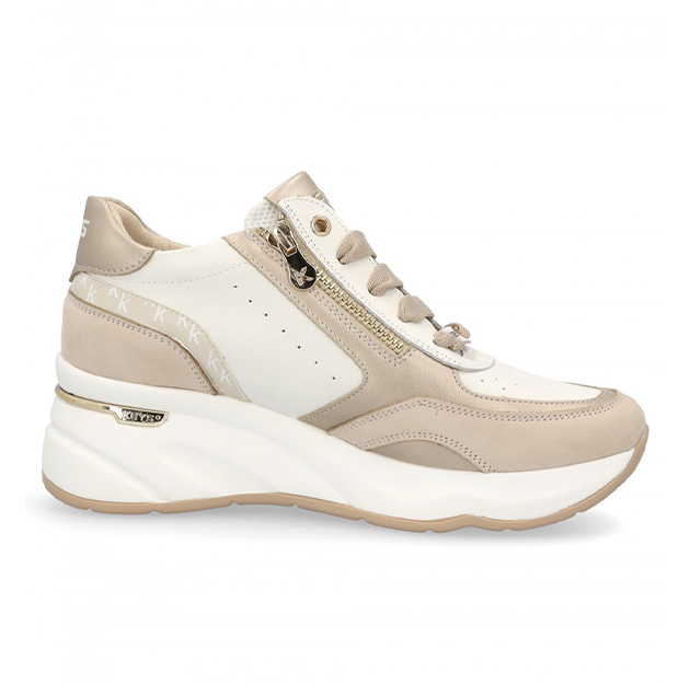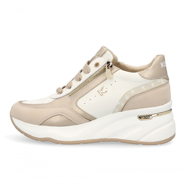 Sneaker Donna KEYS in pelle – K-10591 BEIGE/AVORIO/PLATINO