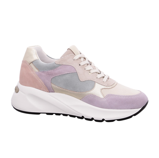 Sneaker Donna lilla in camoscio con inserti in pelle laminata e dettagli a contrasto di colore. Logo laterale. Carattere audace per questa sneaker must-have di tendenza. Made in Italy.