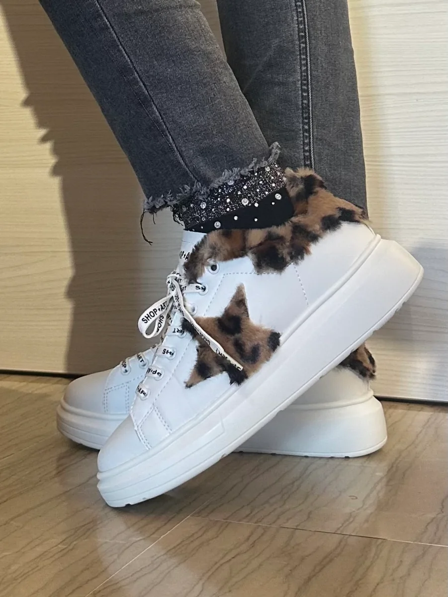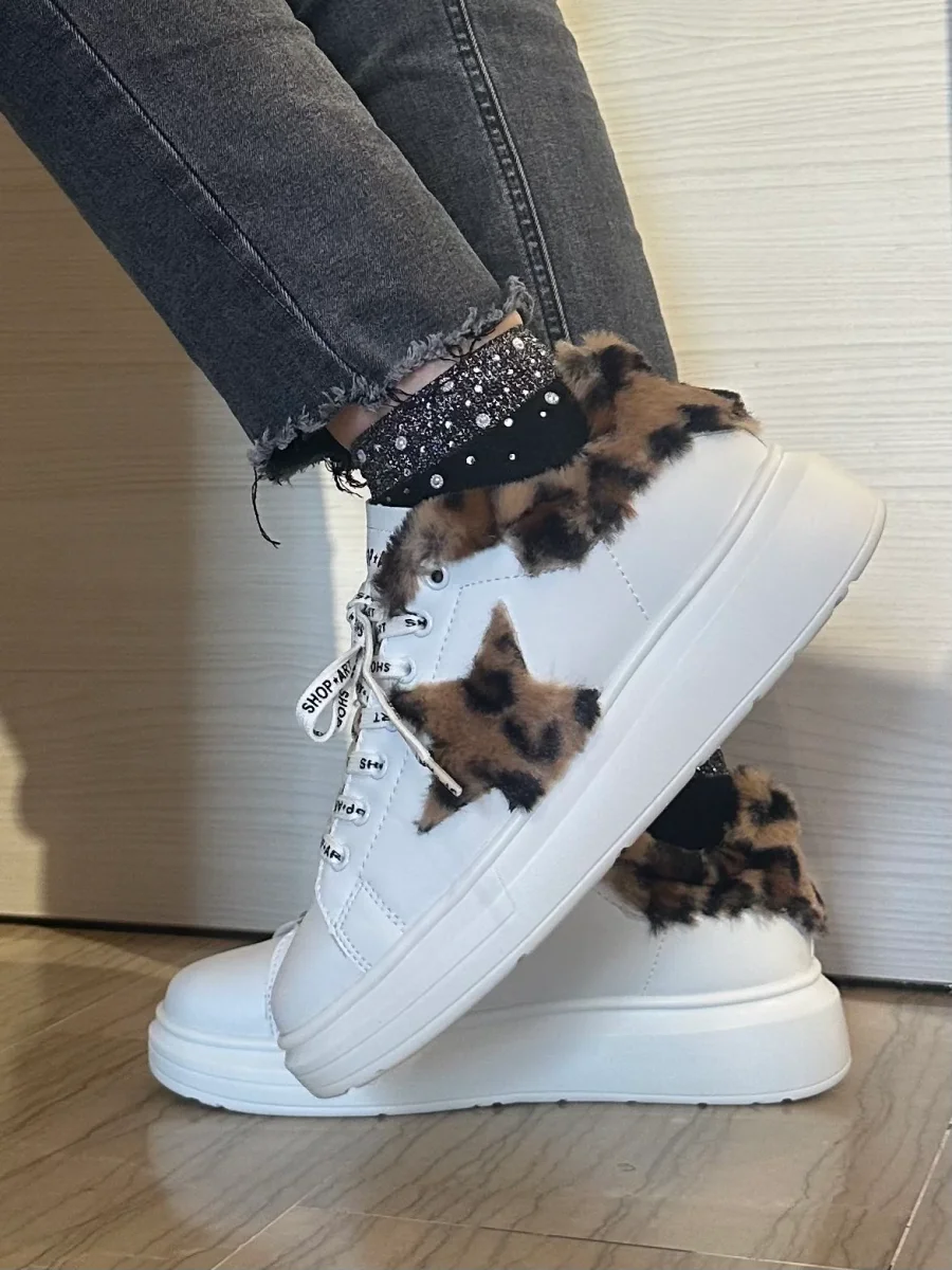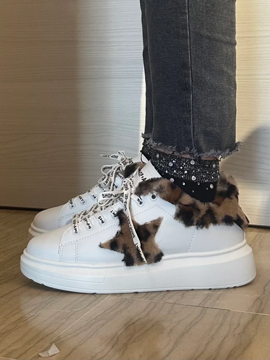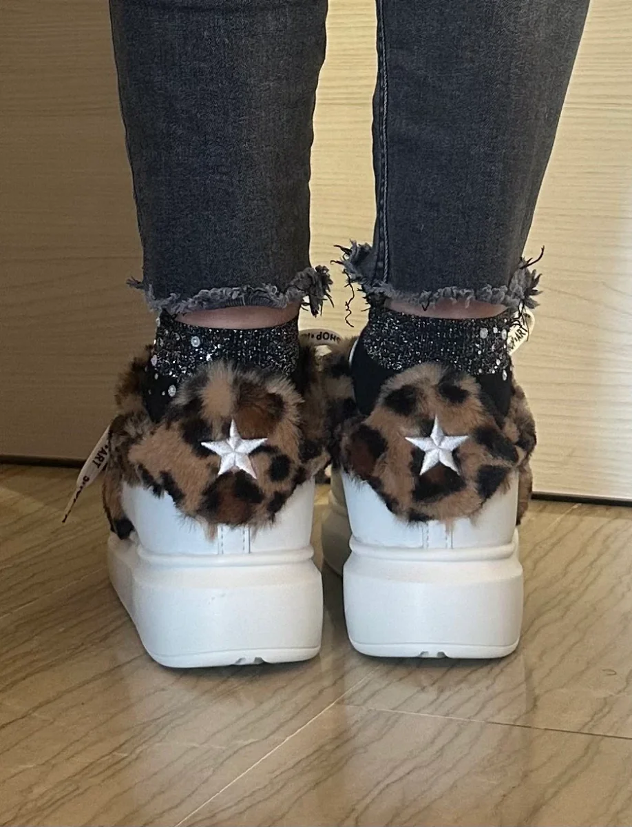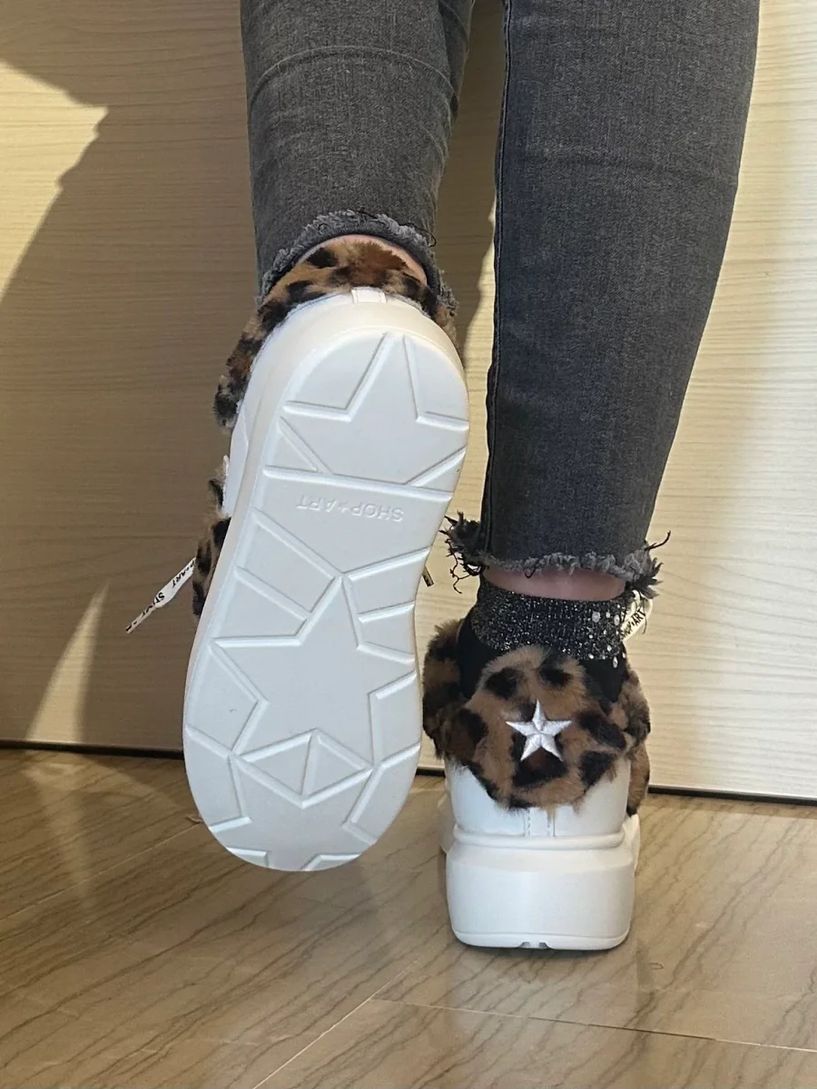 la sneaker perfetta per chi ama il leopardato ma non preferisce essere tanto notata ๐ Tutta bianca con dettagli, sia sulla stella laterale che al tallone, in ecopelliccia leopardata. Perfetta da abbinare a svariati outfit invernali, indicata anche per personalizzare i tuoi outfit eleganti. La vedo benissimo con tutti i toni di beige, marrone, rosso. Morbido plantare e suola in gomma antiscivolo