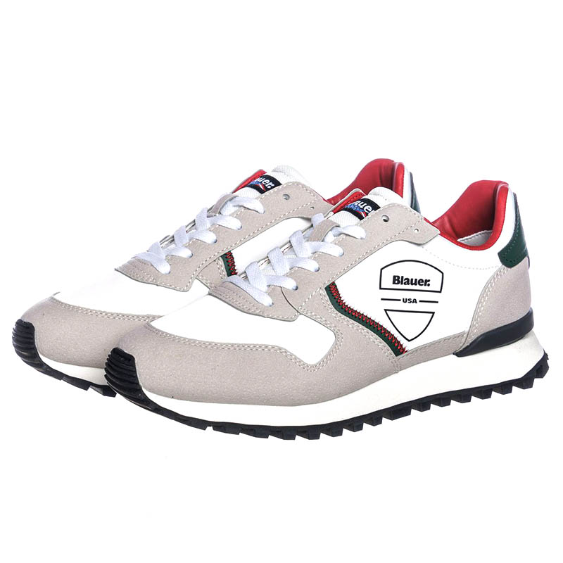 Sneaker Uomo BLAUER in tessuto nylon e camoscio – S3DIXON01/NYS WHITE/RED/GREEN