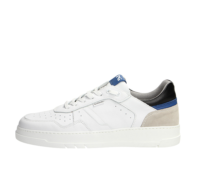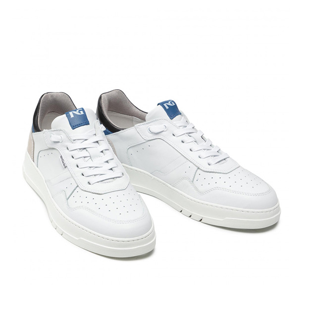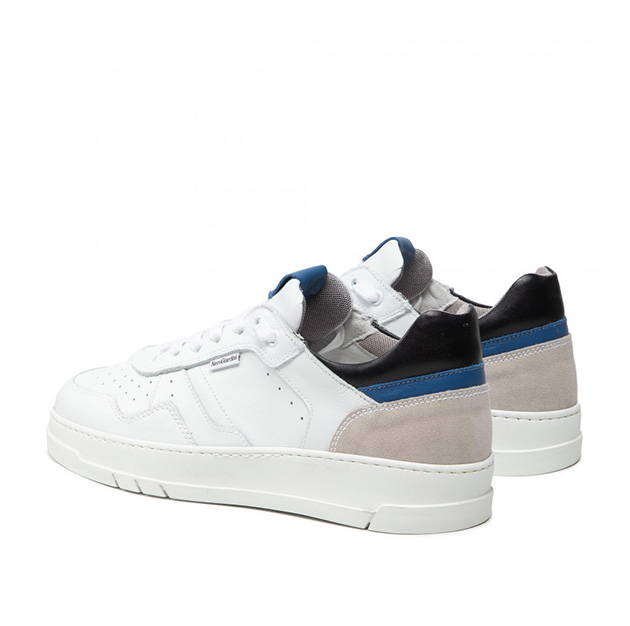 Sneaker Uomo bianca in pelle, con inserti in camoscio e pelle a contrasto di colore. Design grintoso per un must have del guardaroba maschile. Made in Italy.