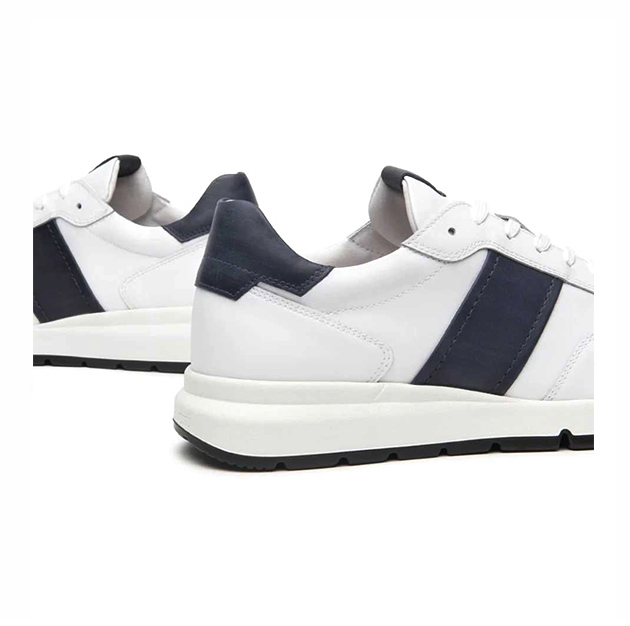 Sneaker Uomo bianca in pelle, con inserti a contrasto di colore. Stile sporty-glam. Made in Italy.