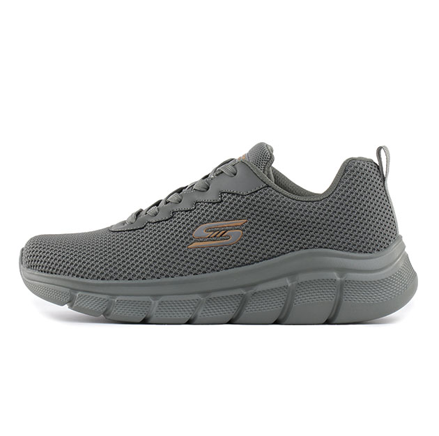 Sneaker Uomo oliva in maglia ingegnerizzata, con logo laterale e soletta interna ammortizzata Skechers Memory Foamโข, BOBSยฎ di Skechersยฎ. Comoda e pratica.