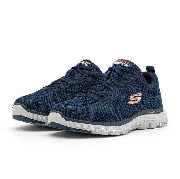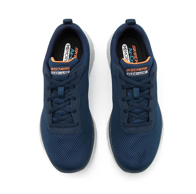 Sneaker Uomo blu in mesh e tessuto tecnico, col comfort flessibile e leggero della Skechers Flex Advantage.ย Soletta skechers Air Cooled Memory Foamยฎ. Logo laterale, ideale per le lunghe passeggiate e per chi passa molto tempo in movimento, senza rinunciare al glam.