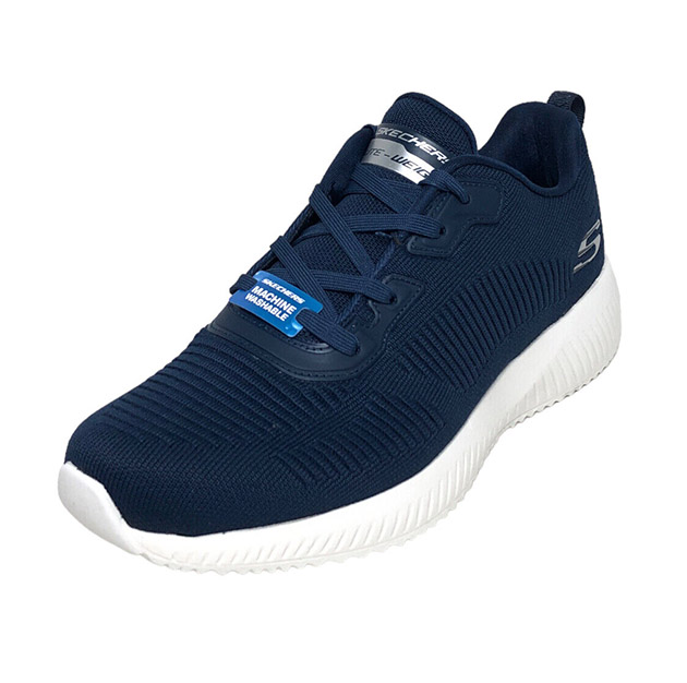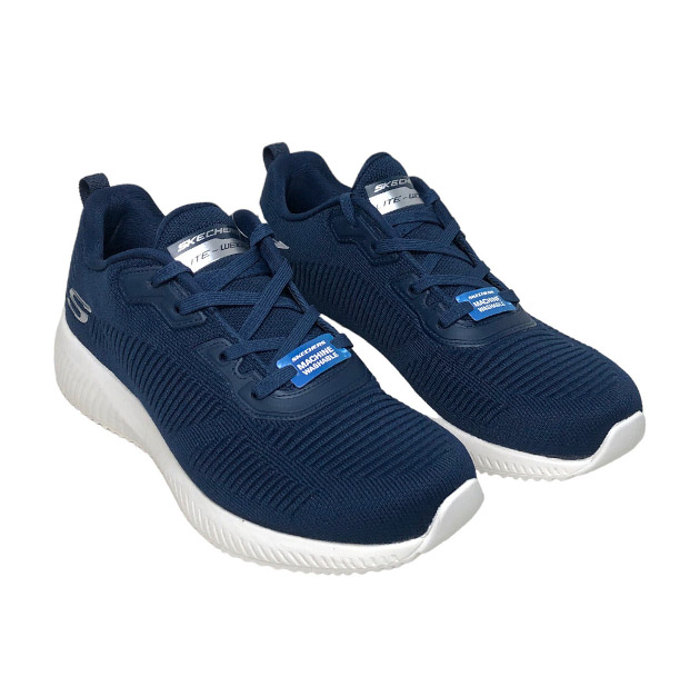 Sneaker Uomo blu in tessuto tecnico aย maglia, ingegnerizzata con strati esterni sintetici e una soletta imbottita Skechers Memory Foam &TRADE. Lavabile in lavatrice. Logo laterale e sul retro. Ideale per le lunghe passeggiate e per chi passa molto tempo in movimento, senza rinunciare al glam.