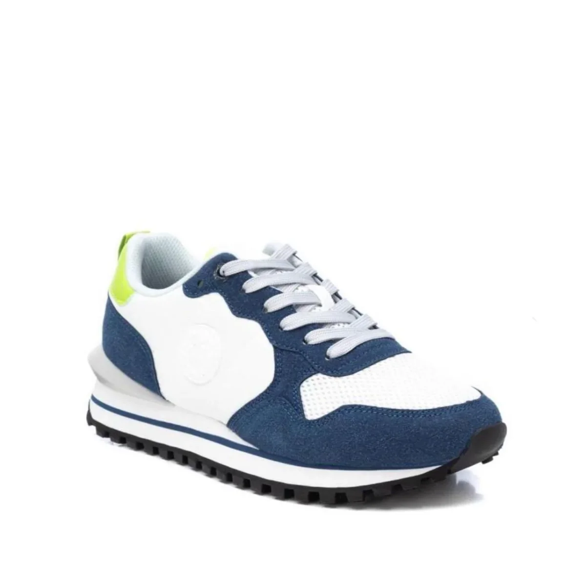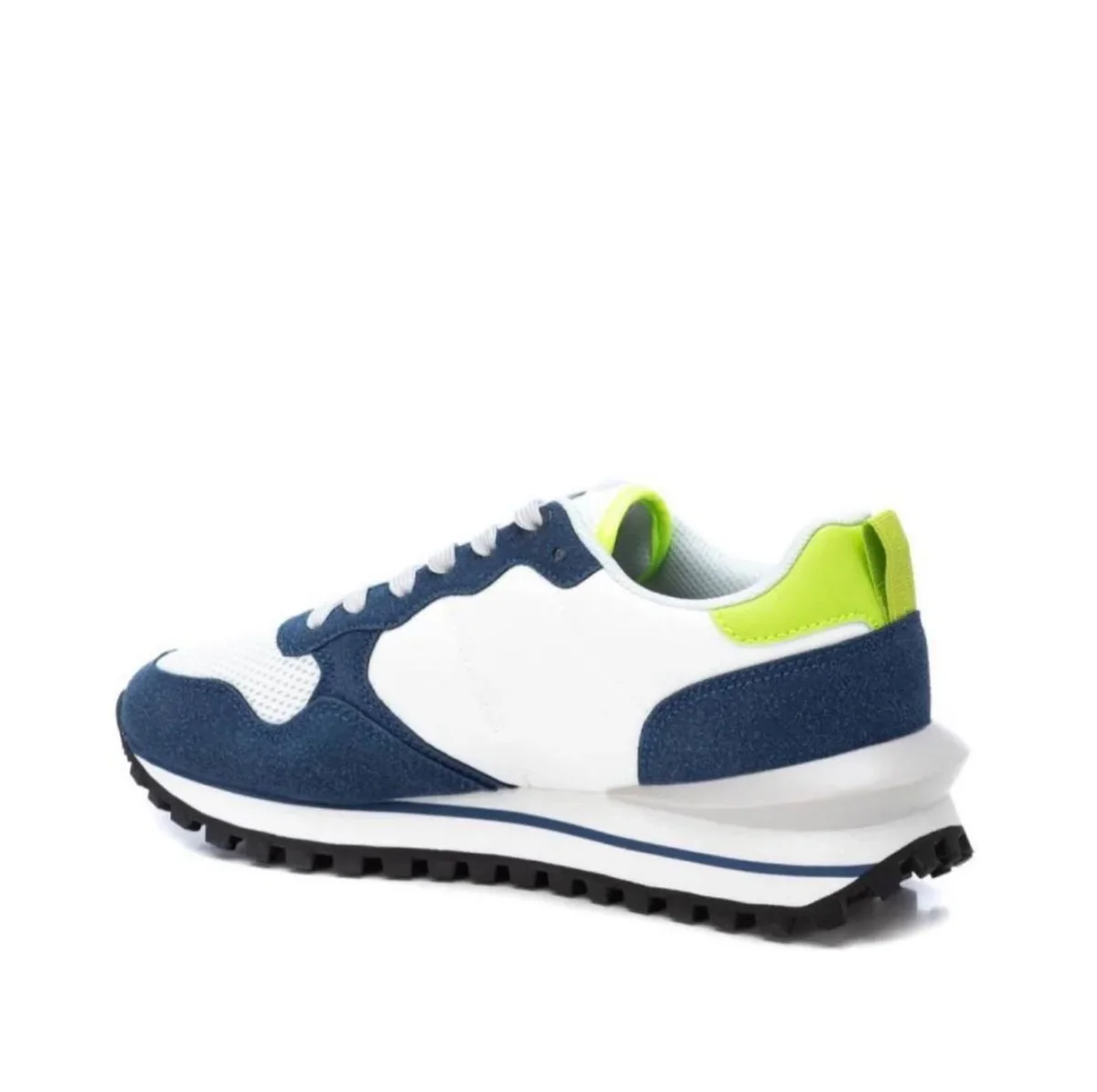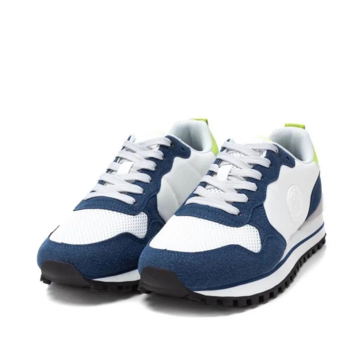 Stai cercando una sneaker da uomo leggera, morbida, perfetta per tutte le stagioni e colorata? Eccola qui! Fondo bianco con dettagli e bordi blu e verde fluo. Perfetta da abbinare con ogni outfit casual. Suola leggera e morbida in gomma antiscivolo. Xti poi garantisce plantari confortevoli in memory.