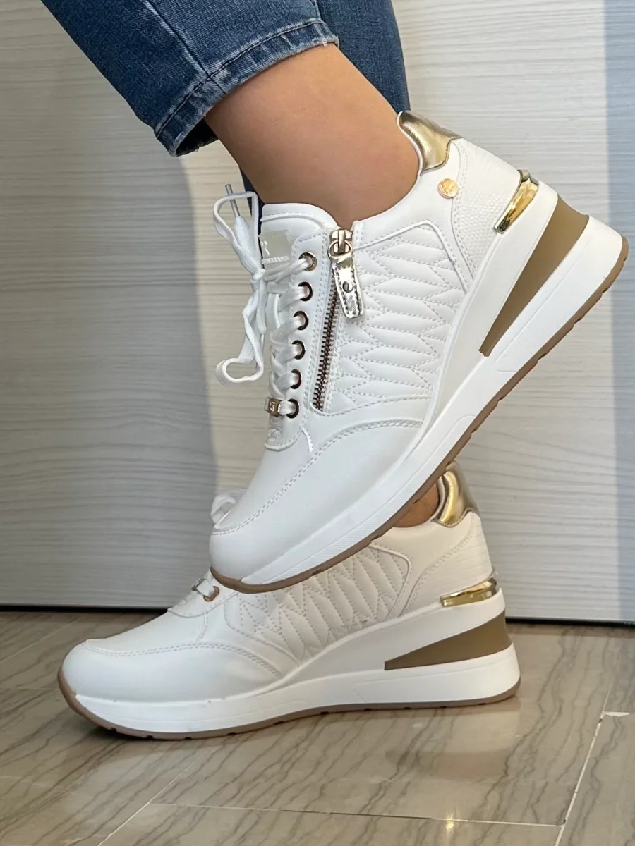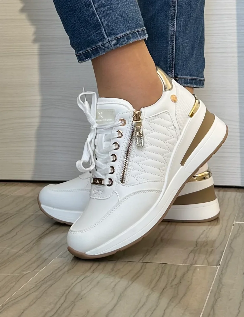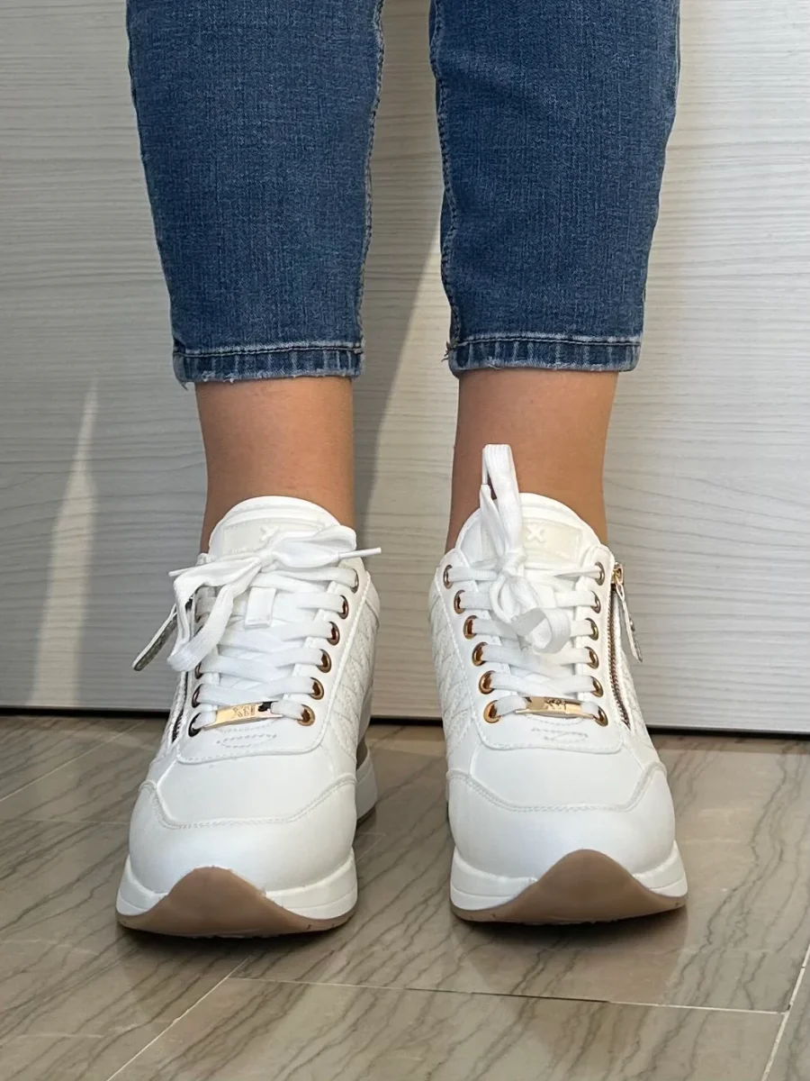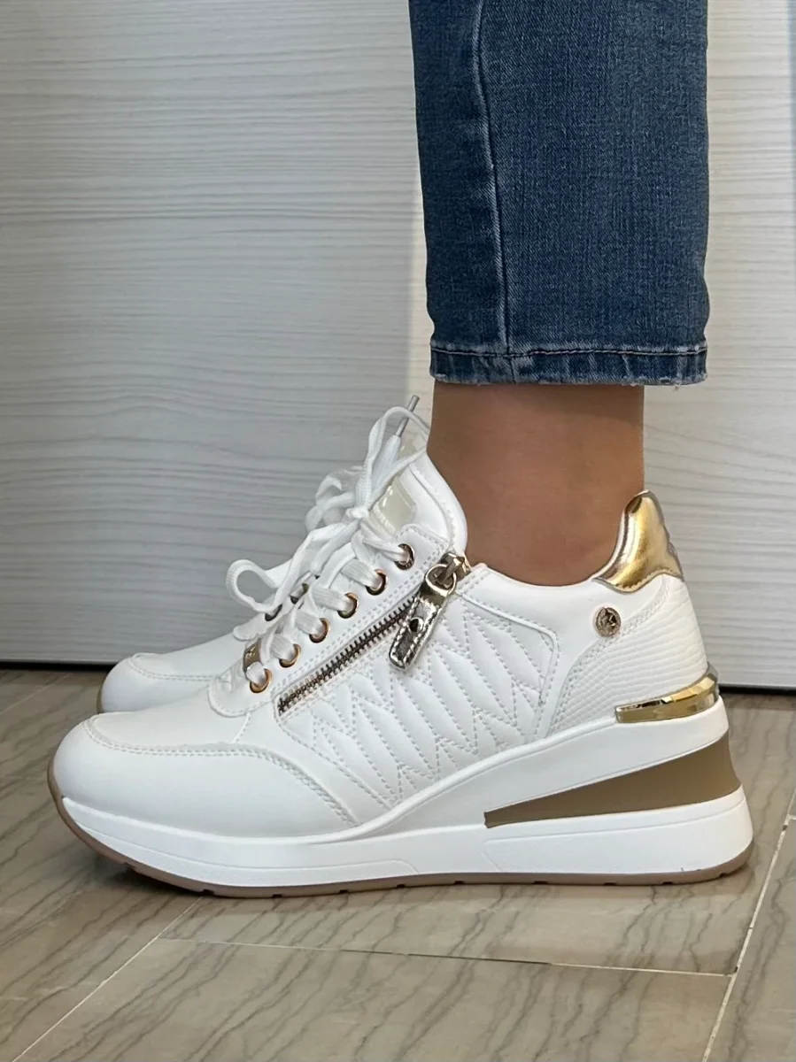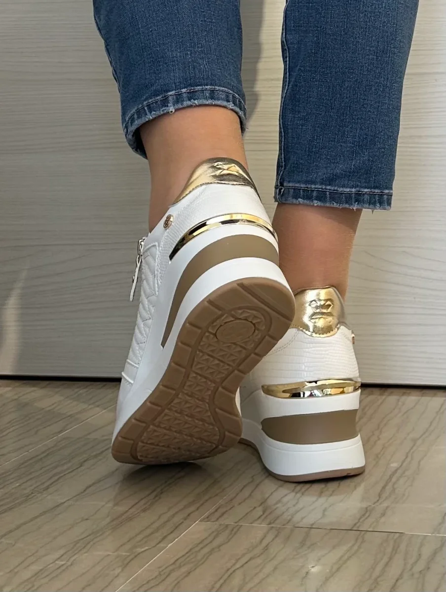 SNEAKER XTI BIANCA E ORO CON TACCO
