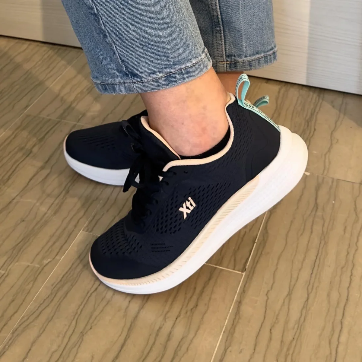 Se stai cercando una scarpa leggera, sportiva e perfetta per la tua attivitร fisica eccola qui!! Super morbida e pieghevole, calzata regolare ma piรน indicata per la pianta affusolata. Blu con dettagli bianchi e rosa la rendono adatta giร per le giovani che per adulti. Xti poi garantisce suola in leggera gomma antiscivolo e plantari morbidi in memory estraibile.