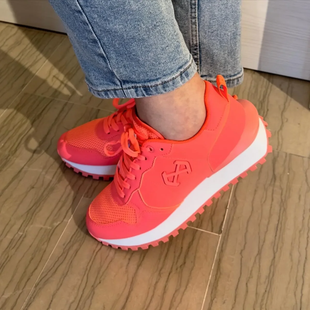 Ti piacciono i colori fluo?! Questa sneaker allora deve essere tua!! Color corallo, perfetta per la stagione primavera-estate. Si abbina benissimo al jeans e a svariati outfit sportivi.Xti poi garantisce suola in leggera e morbida gomma antiscivolo e plantare estraibile confortevole in memory. PERFETTA!
