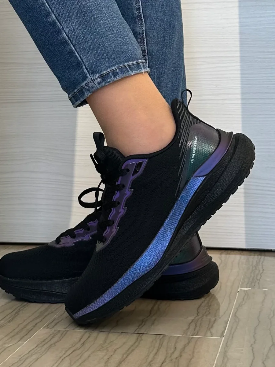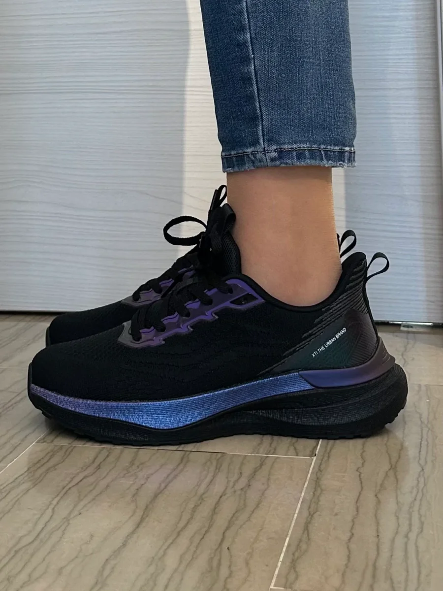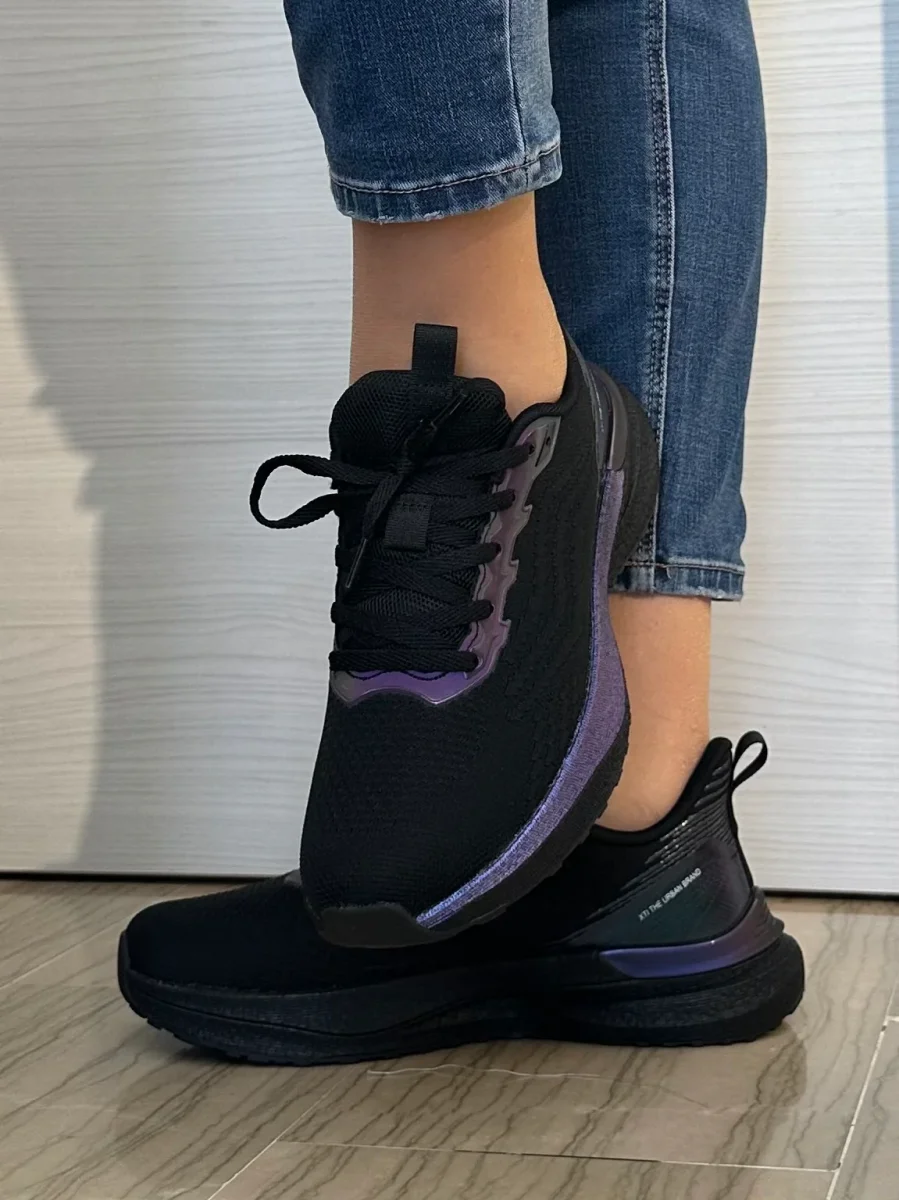 Perfetta per le tue passeggiate, ottima per lโattivitร fisica, leggerissima, quindi molto utile anche per lavori che necessitano stare tanto in piedi. Nera in tessuto traspirante con dettagli brillanti sul viola, calzata regolare e perfetta anche per chi ha la pianta larga. Morbido plantare estraibile in memory e suola in leggera e flessibile gomma antiscivolo.