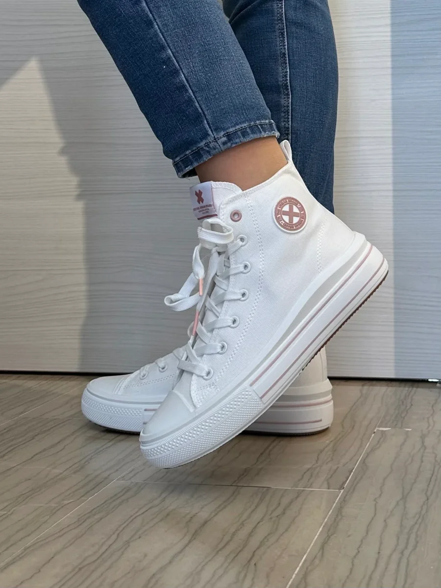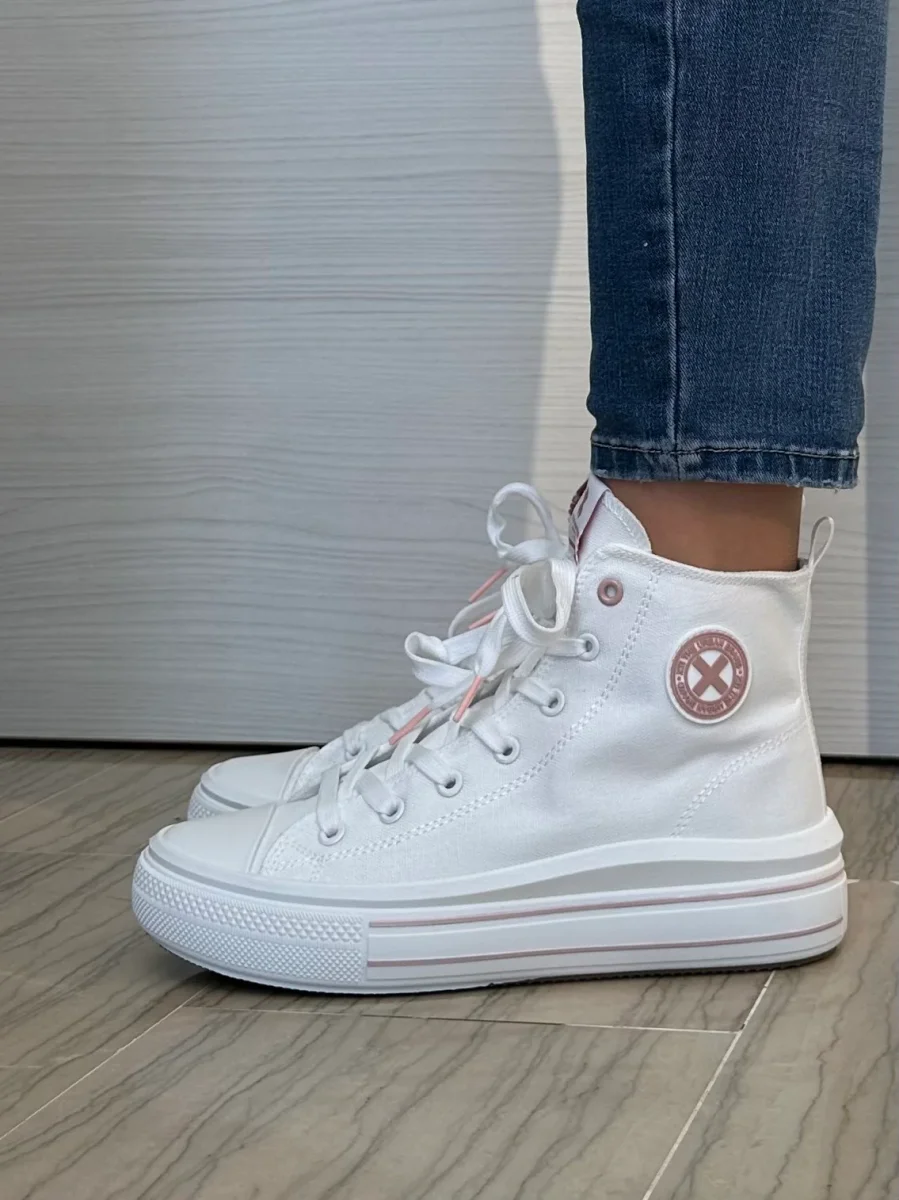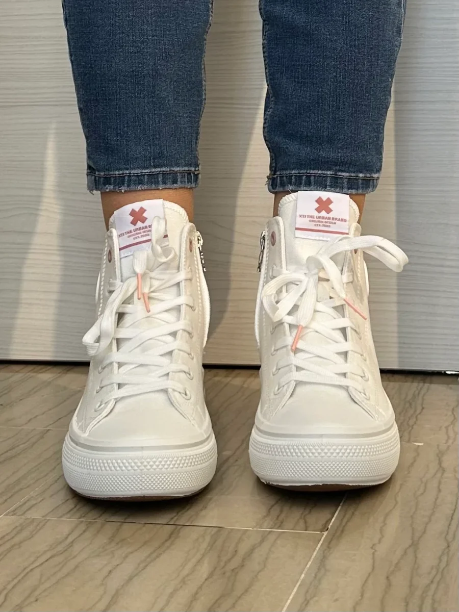 Un grande classico: preferito da tutti per la stagione estiva. Tutta bianca con alcuni dettagli in rosa, perfetta per giovani ragazze ma anche per tutte le donne. Pratica da indossare in quanto ha anche internamente una pratica chiusura a zip. Xti garantisce anche morbidi plantari estraibili in memory e suola in leggera gomma antiscivolo.