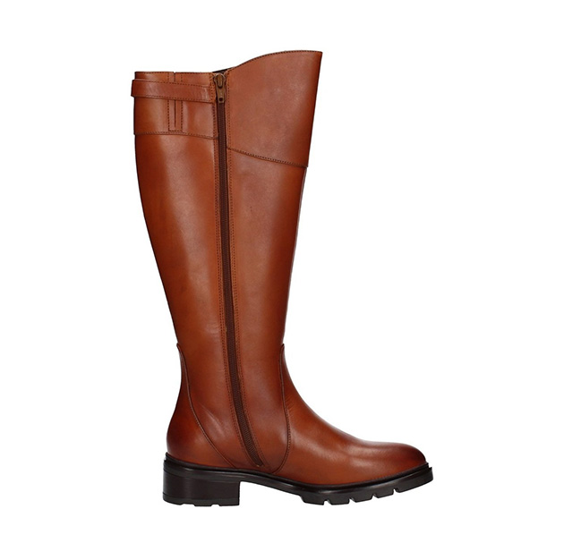 Stivale Donna cognac in pelle, con fondo dentagliato e antiscivolo, laccetto posteriore con cinghia regolabile. Qualitร e stile garantiti dal marchio Italiano Keys.