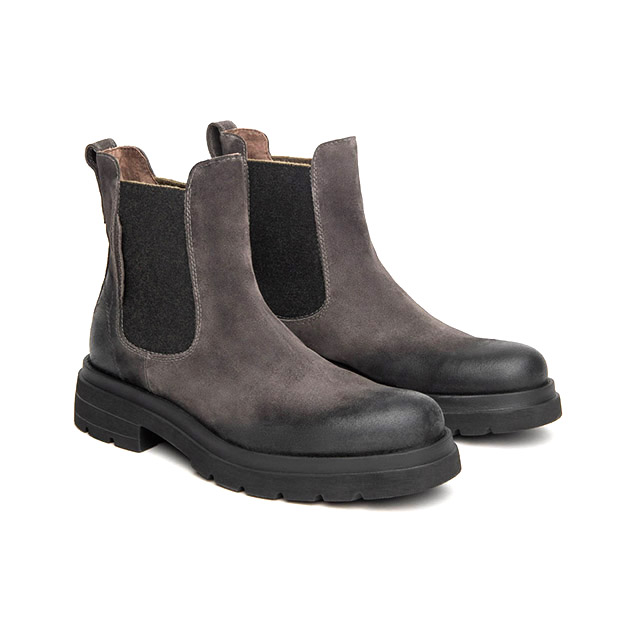 Stivaletto chelsea Uomo carbone in camoscio spazzolato, con elastici laterali.ย Look urbano e contemporaneo. Made in Italy.