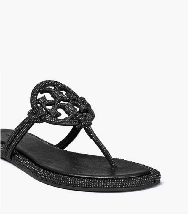 Tory Burch Sandalo Miller in pelle annodata con pavè blu