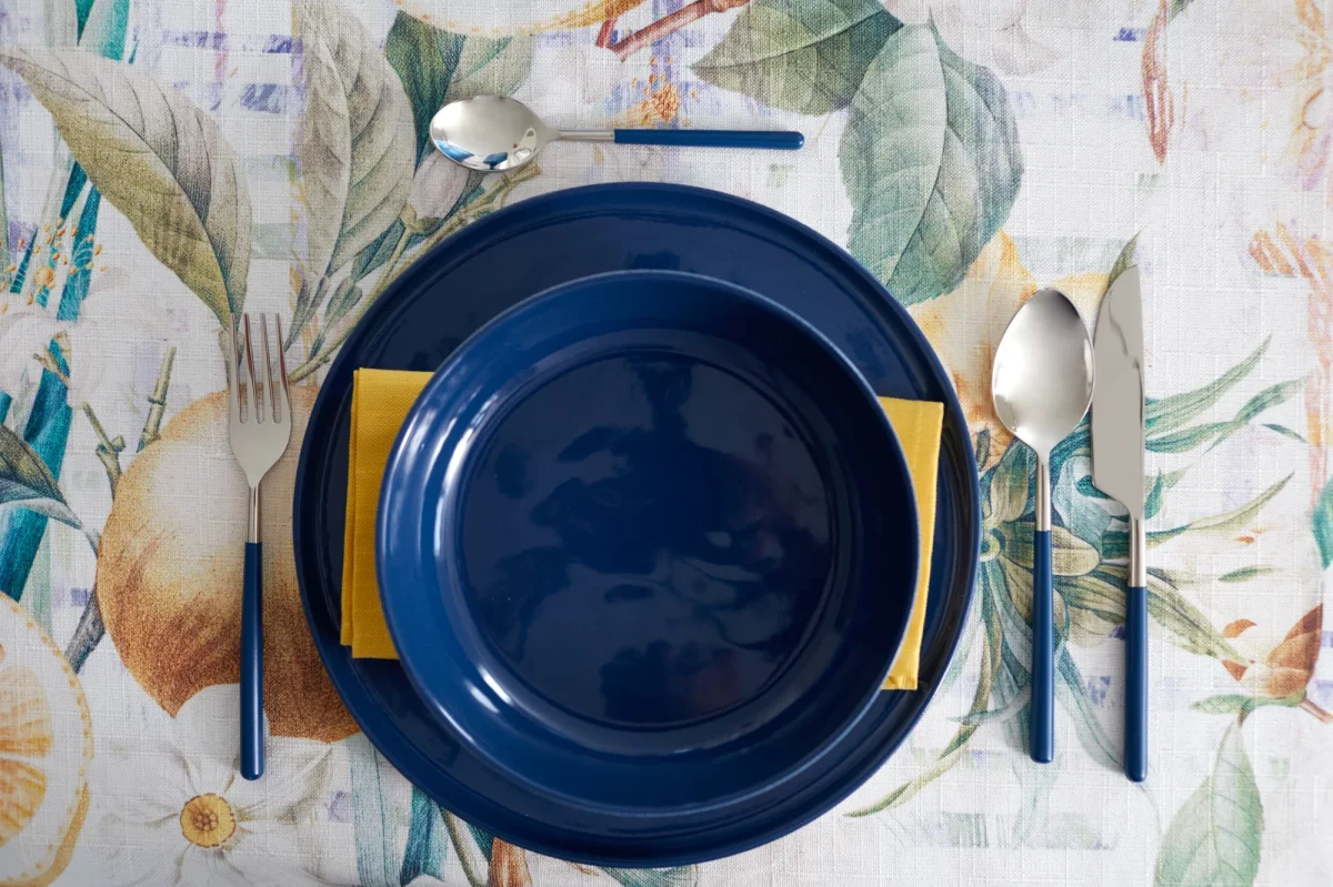 La tovaglia Verna รจ un vero e proprio capolavoro artistico che trasforma la tavola in un giardino primaverile. Il design si abbina magnificamente a stoviglie bianche o blu navy, bicchieri in vetro blu cobalto o trasparente, tovaglioli giallo limone o blu navy, e accessori in ceramica artigianale o metallo argentato.