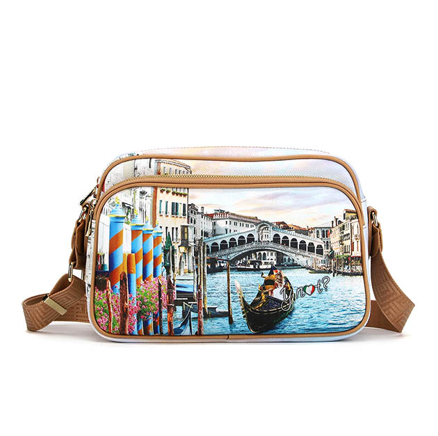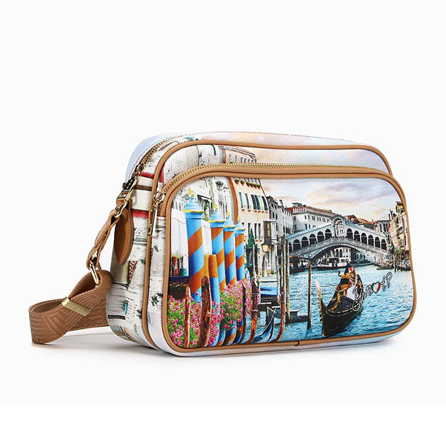 Tracolla reporter Donna in goffrato tema Venezia, caratterizzata da un design unico e audace. Grazie ai suoi molteplici scomparti, รจ la borsa ideale per tenere in ordine e al sicuro i tuoi oggetti importanti. 1tracolla regolabile in nylon 3 tasche chiusura con zip Interno foderato con tasche applicate