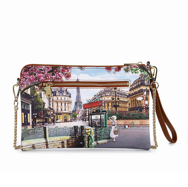 Tracolla small Donna multicolor in goffrato, tema Parigi. Un accessorio must-have per le tue uscite in cittร . Piccola, leggera e versatile, si porta a spalla o crossbody, aggiungendo un tocco di stile a qualsiasi outfit. Laccio in pelle Tracolla in catena Portabilitร a mano e tracolla Scomparto centrale e tasca posteriore chiusi con zip