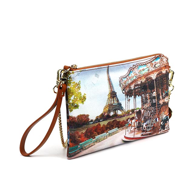 Tracolla small Donna multicolor in goffrato, con stampa Parigi. Scomparto esterno con cerniera, tracolla removibile, portachiavi remoibile.