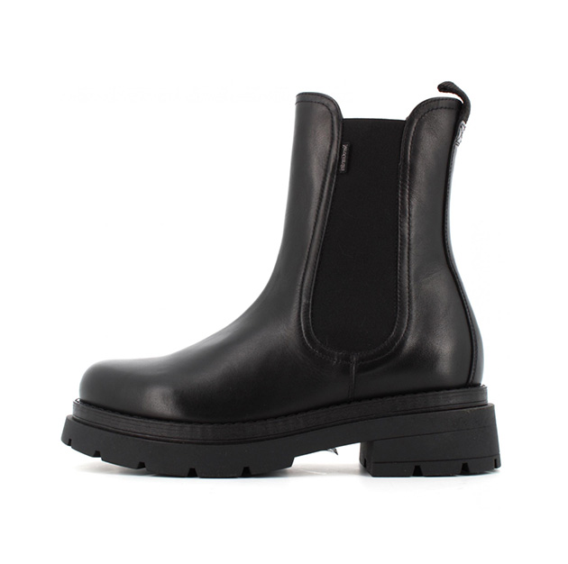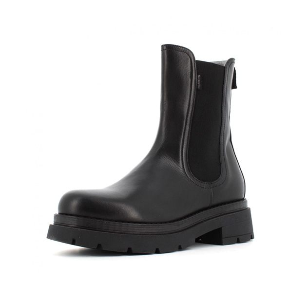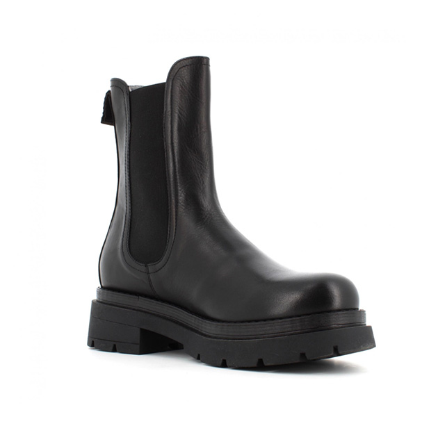 Tronchetto chelsea Donna nero in pelle, con elastici laterali. Fondo carrarmato per un look grintoso e deciso. Made in Italy.