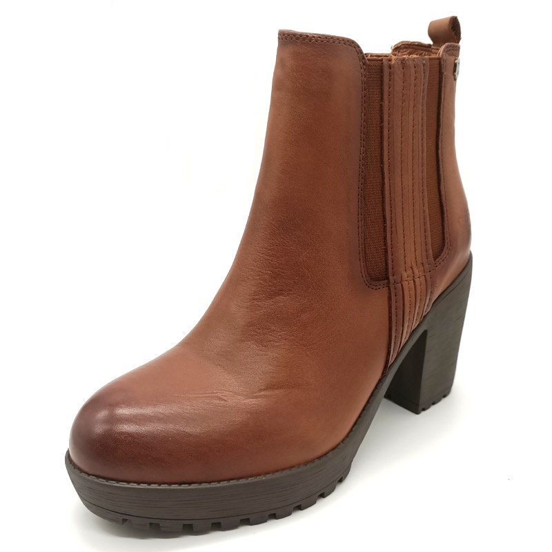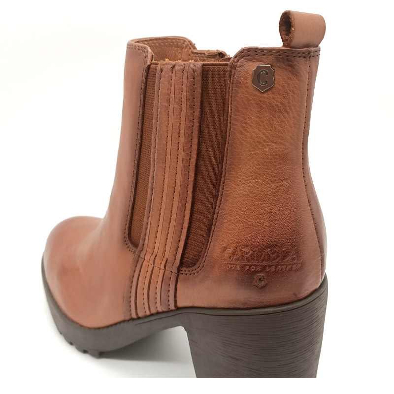 Tronchetto Donna cammello in pelle, con fascia elastica decorativa e marchio inciso sul lato. Look casual e glamour per questa scarpa adatta ad ogni outfit.