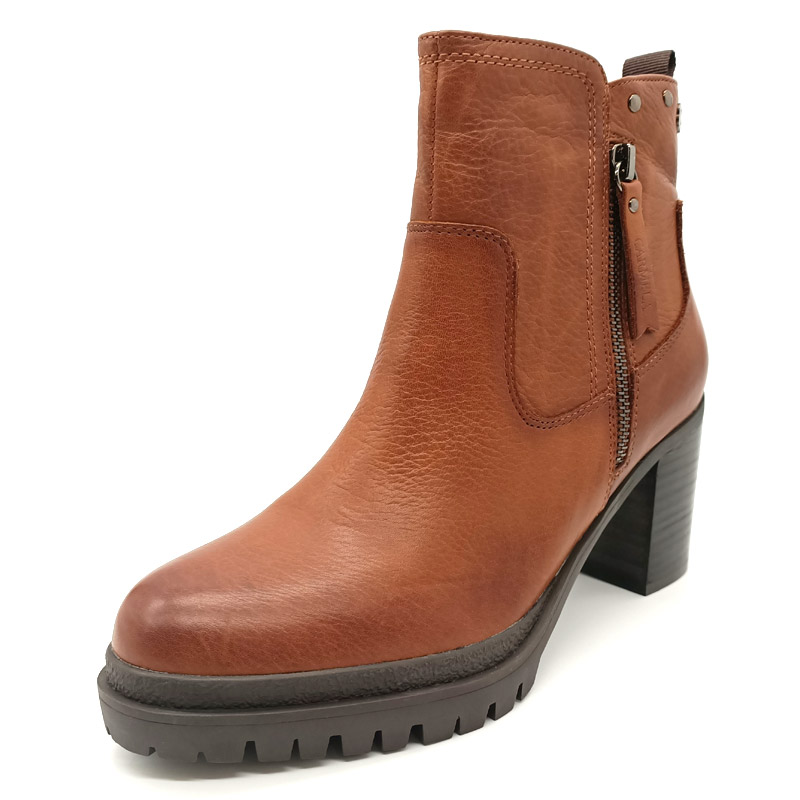Tronchetto Donna cammello in pelle, con logo sul retro e borchiette decorative. Look minimal-chic per questa scarpa adatta ad ogni outfit.