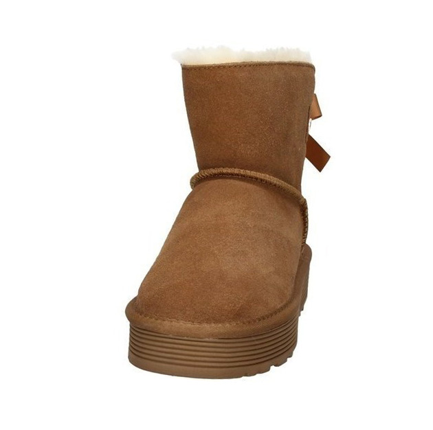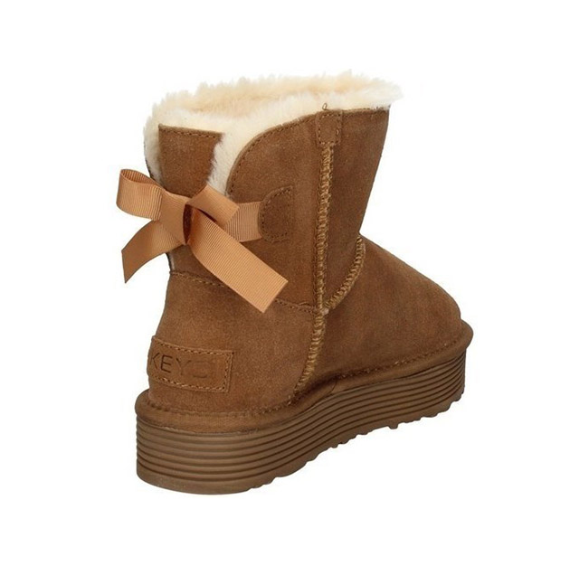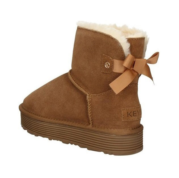 Tronchetto Donna camel in camoscio, rivestito internamente di calda pelliccia sintetica. Cuciture in rilievo tono su tono, fiocchetto e logo posteriore e logo laterale. Qualitร e comoditร garantita dal Brand Italiano Keys.